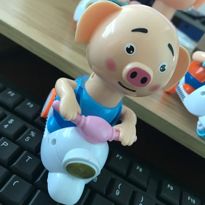 Маленькая желтая утка/свинья едет по форме трехколесного мотоцикла, милый и изысканный, хороший маленький подарок для детей.
