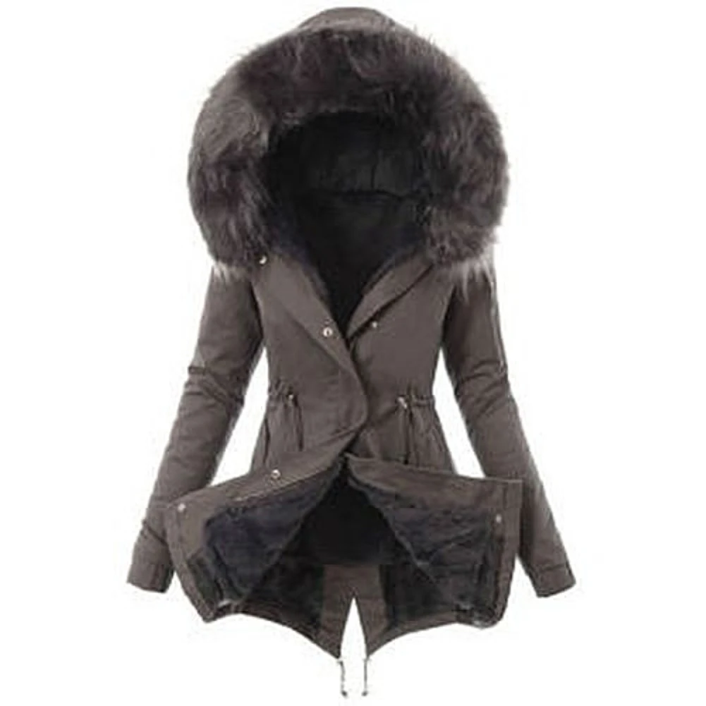 Модная зимняя женская парка, теплая куртка с длинным рукавом, меховая толстовка с капюшоном, стеганая парка, верхняя одежда, черный, красный, серый манто, Женская куртка