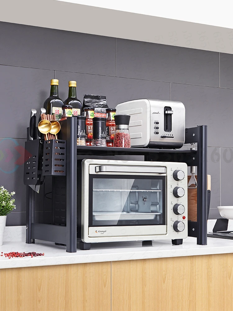 Выдвижная Черная кухонная полка для микроволновой печи с длинной высотой, 2 двухслойные рисоварки для домаUS $74,67 /