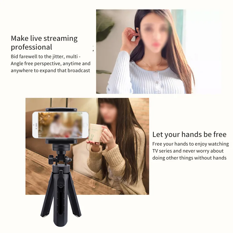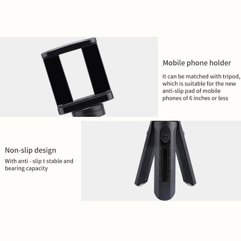 Мини-штатив для телефона разработан с противоскользящей накладкой на зажиме телефона внутри и нижней части штатива, чтобы эффективно обеспечить стабильность штатива для мини-телефона.