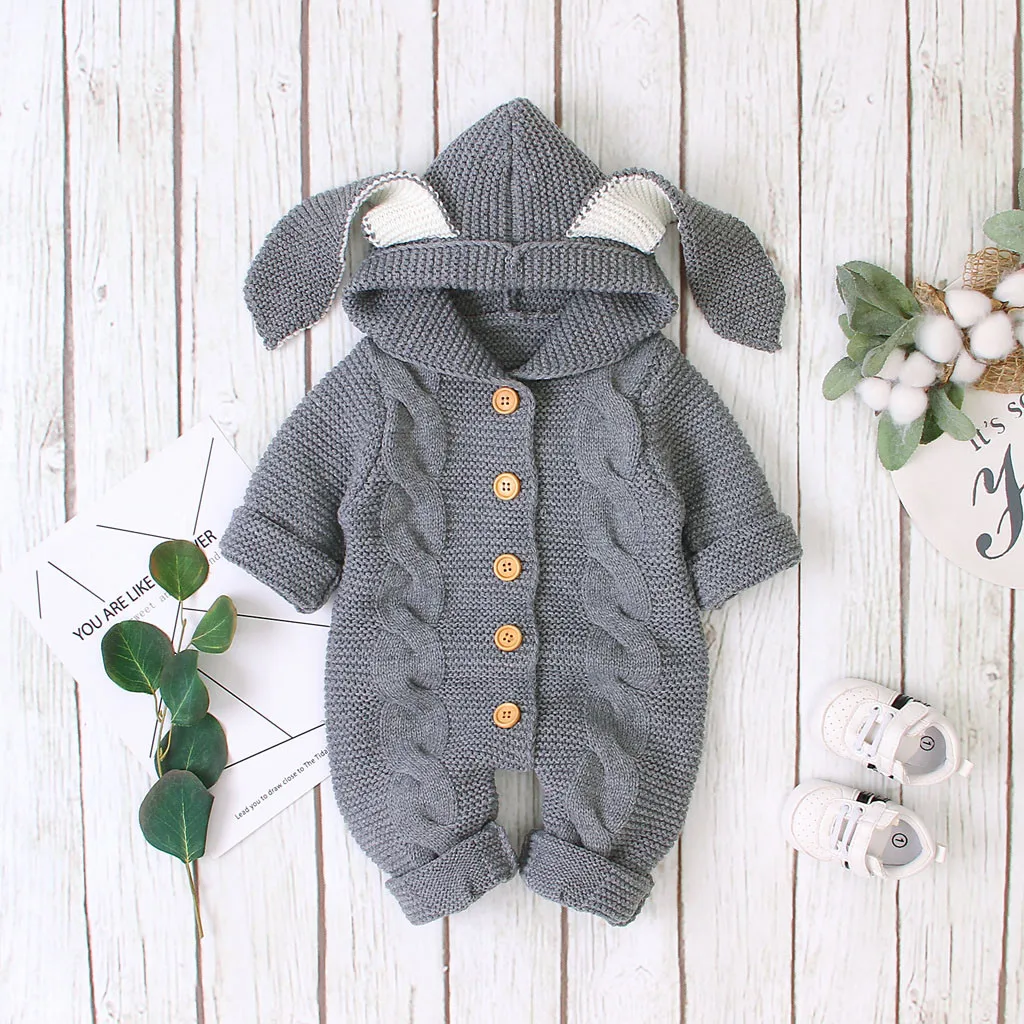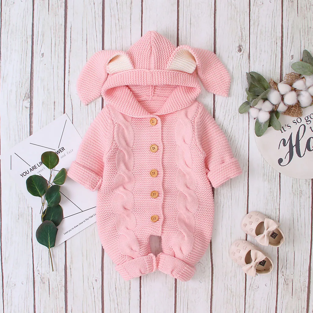 Зимнее теплое пальто для новорожденных девочек и мальчиков трикотажная верхняя одежда, комбинезон с капюшоном