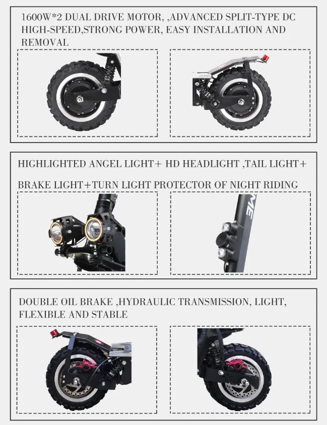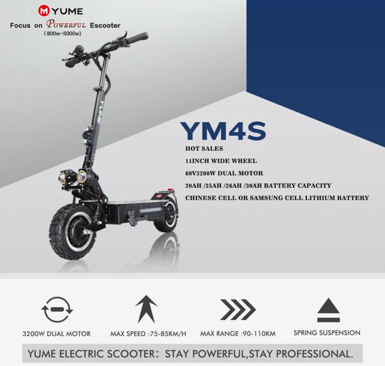 YUME 4S мощный 11 "двойной двигатель 3200 Вт внедорожные шины до 55 милей и 55MPH складной электрический скутер, способный преодолевать Броды для взрослых Основные Особенности: ★[Мощный двигатель и скорость]: Мощный 3200 Вт, высокая скорость постоянного тока, бесщеточный двойной двигатель, достигает скорости 55 миль/ч ★[Дальность действия]: литиевая батарея Samsung 60 в 30 А, дальность действия 55 миль. ★[Двойное Демпфирование] двойная пружина, передняя и задняя амортизирующая структура. Более удобная и безопасная ★[Внедорожные шины] 11 дюймов, большие колеса, внедорожные шины, адаптируются ко всем типам тротуаров. Высокая амортизация и противоскользящие ботфорты ★[Складной дизайн] Быстрый складной механизм позволяет сложить и развернуть его за считанные секунды, что позволяет легко помещать его в багажник автомобиля, подходит для путешествий дома.