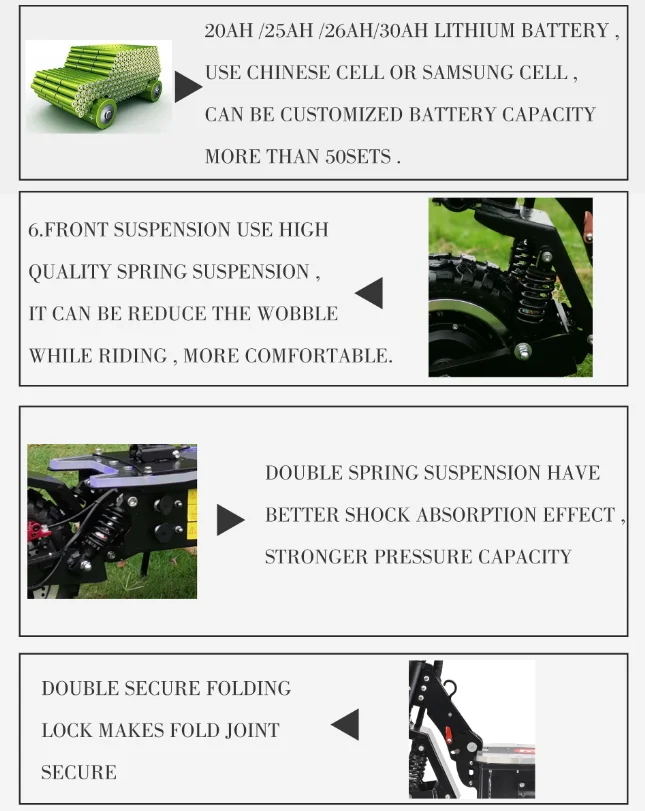 Номер детали: YM4S Мощность двигателя: 3200 Вт, двойной двигатель Максимальная скорость: 85-90 км/ч Литиевая батарея: 60 в 25 Ач 30 Ач Диапазон 1: 75-85 км (25 Ач) Диапазон 2: 90-110 км (30 Ач) Шины: Внедорожные (11 дюймов) Тормоза: передние и задние масляные тормоза Светильник: Ангел светильник, дБ светильник Зарядное устройство: два Зарядное устройство s 60V2A Ключ: ключ напряжения Материал оправы: алюминий/Ferroally