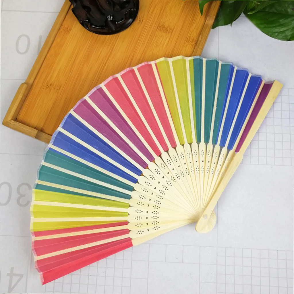 Радужный ручной складной веер для танцев для свадебных тематических вечеринок