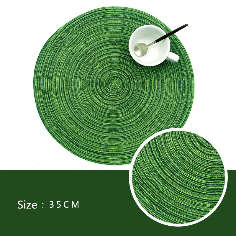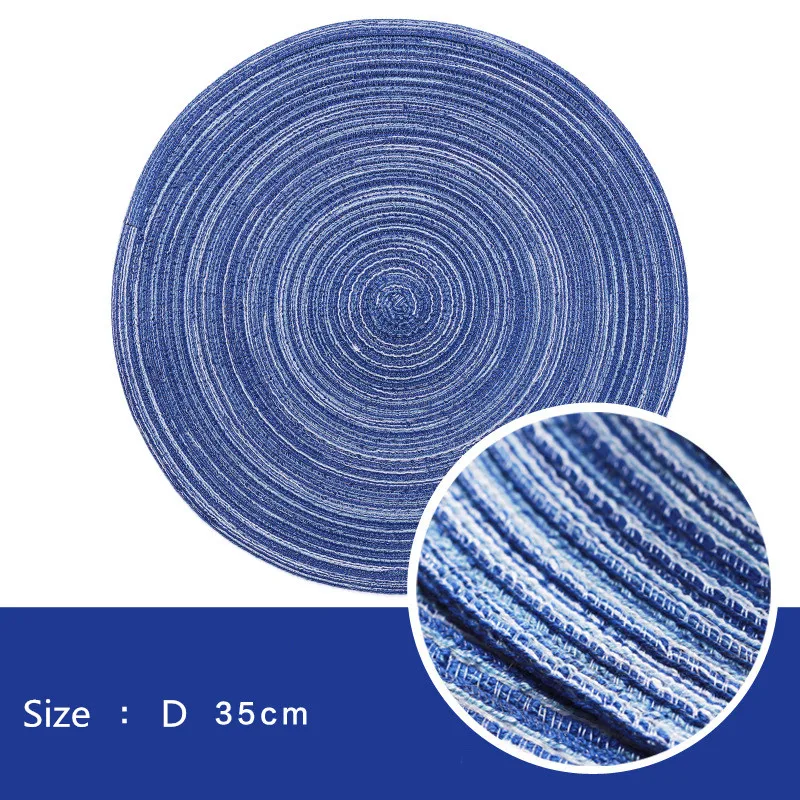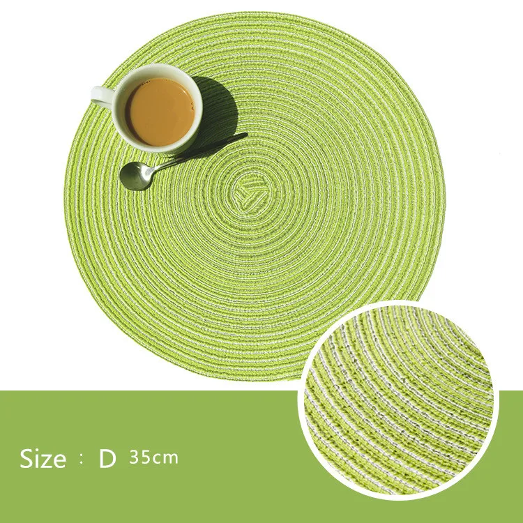 Материал: хлопчатобумажной пряжи Форма: круглый Размер: диаметр 35 см Применение: теплоизоляция, нескользящая, декоративная ресторанная