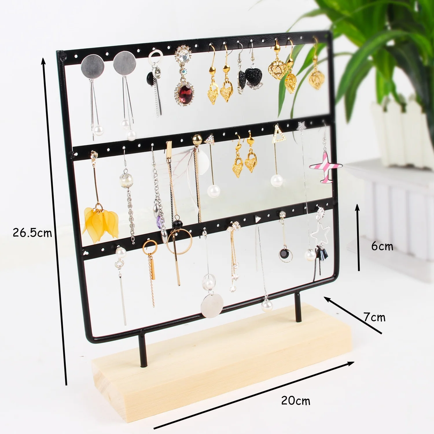 TONVIC 36/57/69 отверстия Деревянный органайзер для сережек, ювелирное изделие, металлическое держатель Дисплей Стенд Серьги Цепочки и ожерелья оптовая продажа браслет стойку 3 слоя