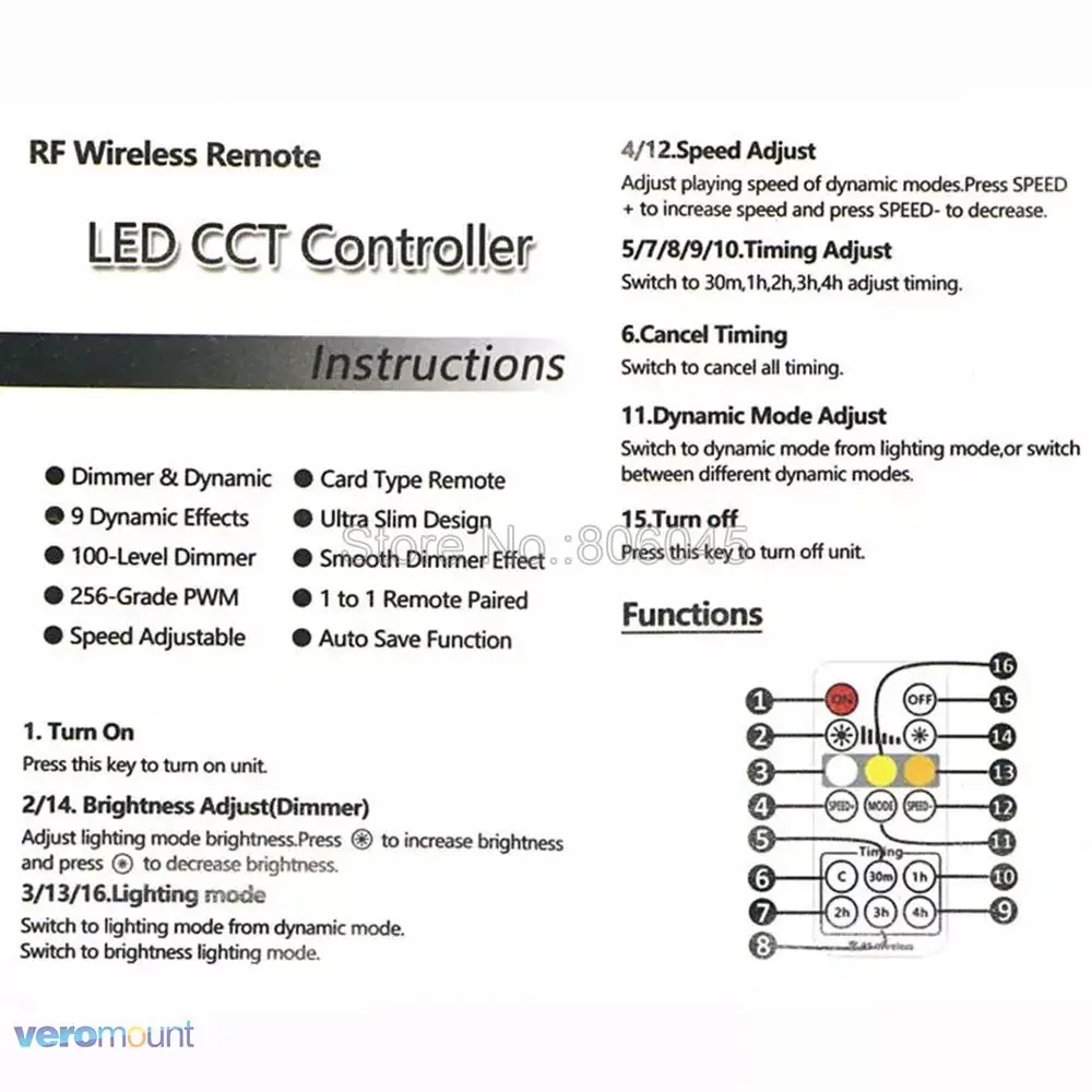 1x5m 5025 двойная белая полоса (IP20 / IP65 как выбрано) + RF CCT контроллер (без батареи) + 12V 3A адаптер питания