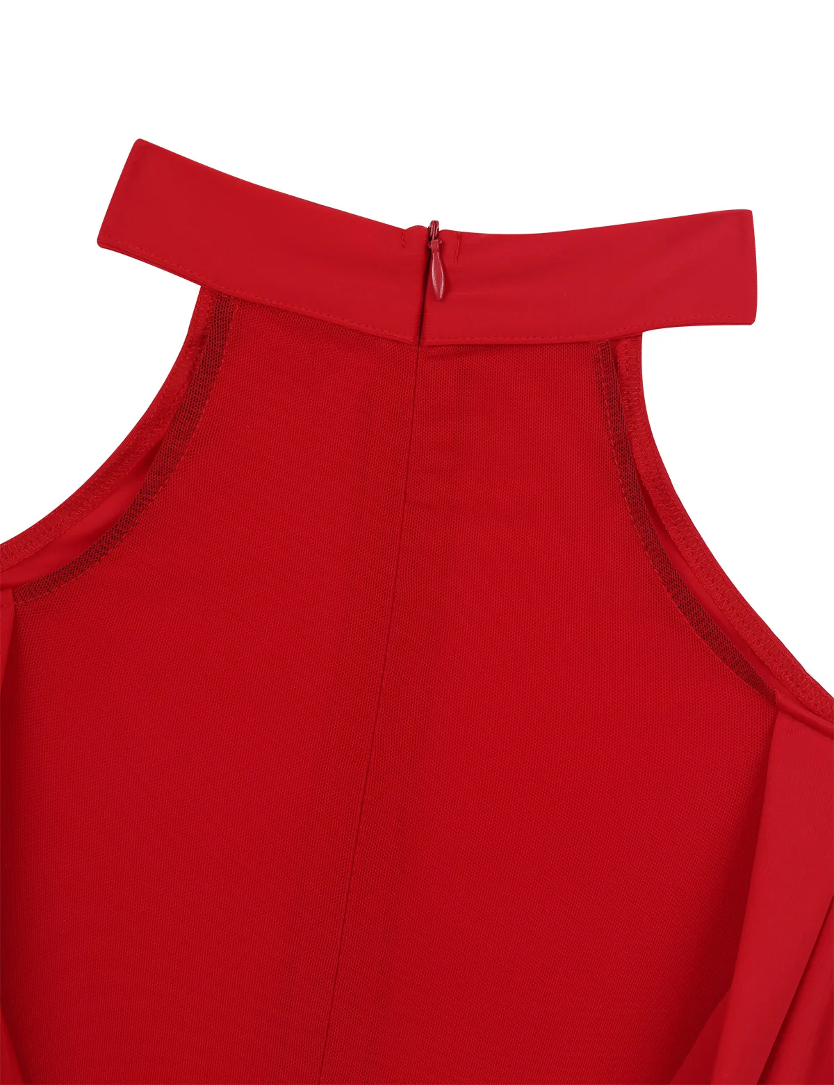 Высокая горловина, длинные рукава и дизайн с вырезами, уникальная сетчатая спинка с драпировкой и хомутом.