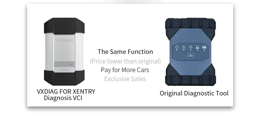Новый мультиплексор VXDIAG для диагностики XENTRY VCI (интерфейс связи транспортного средства) служит интерфейсом для транспортного средства при диагностике и ремонте и программировании электрических и электронных бортовых транспортных систем. VXDIAG для диагностики XENTRY VCI не имеет собственного ПК ядра, батареи, вентилятора или дисплея. Работает с помощью VXDIAG для диагностической площадки XENTRY с помощью WLAN или usb-кабеля.