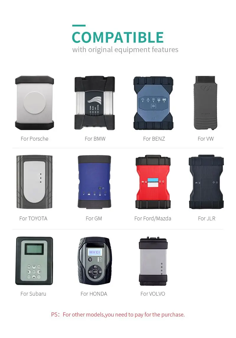 VXDIAG для XENTRY ДИАГНОСТИКА VCI используется для всех модельных серий для Mercedes для Benz транспортных средств VXDIAG для XENTRY ДИАГНОСТИКА VCI поддержка DoIP, покрывает больше функций во время SCN кодирования, чем SD C4/C5 VXDIAG для XENTRY диагностики VCI Функции, включая диагностику, программирование, моделирование изучения, ремонт информации, техническое обслуживание автомобилей, Вестник технического обслуживания и так далее VXDIAG для XENTRY ДИАГНОСТИКА VCI обновления больше не нужны-обновления прошивки, необходимые в редких случаях VXDIAG для XENTRY ДИАГНОСТИКА VCI не нужен блок питания для внешнего источника питания VXDIAG для XENTRY диагностика VCI удобный мультиплексор с маленьким, прочная конструкция (без сердечника ПК, батареи, Вентилятор или дисплей) двигатели (все бензиновые и дизельные системы) трансмиссии и электронные селекционные модули Airmatic и активная система управления корпусом Подвески тяговые системы: ESP / ASR / ETS / ABS / BAS / SBC тормозные системы дополнительные удерживающие системы (SRS) /подушки безопасности, Все модули корпуса OCP / UCP / LCP / SCM / SKF / KFB / RCM / DCM система авторизации привода Sam (получение сигнала) модули электронная система зажигания (EIS) пневматическое системное оборудование и ATA функции кондиционер/система климат-контроля s инструмент кластер контроль давления в шинах парктроник система Keyless Go D2b команда и аудио шлюз (D2B и большинство сетей) ТВ-тюнер налобный фонарь Регулировка диапазона сиденья электроники Rvc, RST & Vario модули крыши автоматическая система сцепления ACS M-Class модули кузова (AAM / EAM / DAS / SEM / VG чехол) Assyst & ASSYST + System s