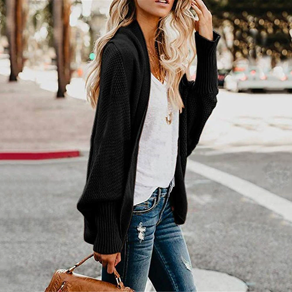 Зимний Кардиган, вязаный свитер с рукавами «летучая мышь», свободный крой