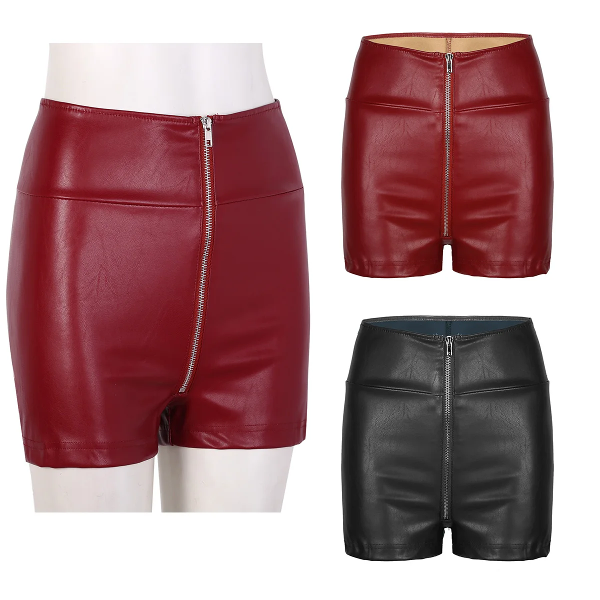 Женские спортивные шорты из искусственной кожи с эффектом мокрого вида, приталенный крой.