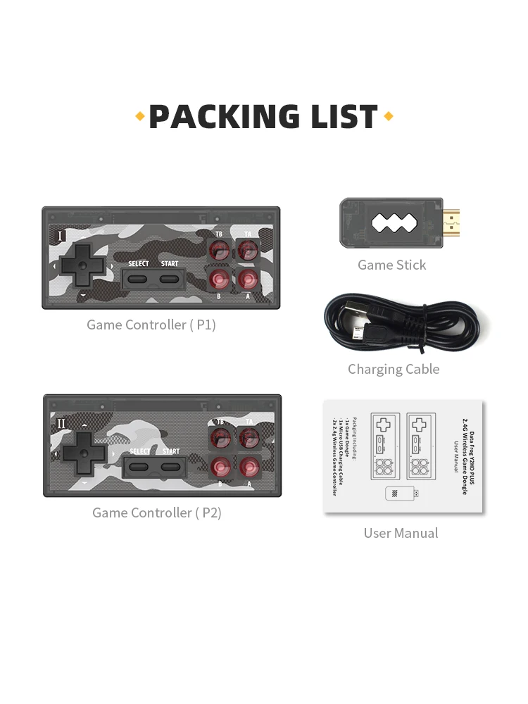 Последняя версия геймпада Y2, улучшенная версия дизайна позволяет двум геймпадам выглядеть более лаконично и просторно, давая ощущение ретро. Если вы хотите поиграть в классические игры с друзьями или семьей, пропустите прошлое, пожалуйста, выберите что! Он может удовлетворить ваши потребности!