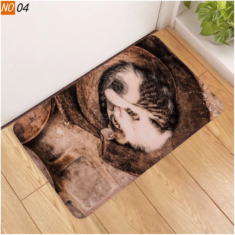 OIMG Противоскользящий напольный коврик для ванной с 3D принтом кота, водопоглощающий текст, коврик для ванной комнаты, коврик для туалетной двери в гостиную