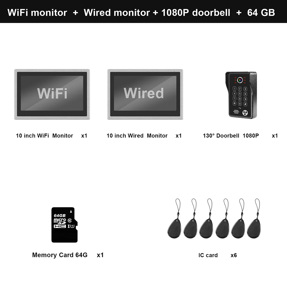 1. 10 дюймов полный сенсорный экран, можно легко подключить 4 наружных устройств 2. Беспроводное подключение по Wi-Fi к смартфону. Установите приложение IP дверной Звонок 3. Подключите монитор к домашнему Wi-Fi или сети, если вам нужно подключиться к смартфону 4. APP контроль в режиме реального времени, 2 способ обсуждения, разблокировать, запись видео с обувью/изображений 5. Разрешение наружного устройства поддерживает 720p/ 960p/1080p (наш дверной звонок на 1080P) 6. Поддержка одновременного подключения до 10 мобильных устройств 7. Поддерживает одновременный мониторинг 4 ОС windows или 1 мониторинг windows 8. Поддержка разблокировки электрическим замком, подключение различных электрических замков 9. 8 языков:/английский/русский/итальянский/немецкий/французский/Польский/ська 10. Внешняя карта памяти (до 512 ГБ) 11. Выбор 5 мелодий звонка, выбор мелодий звонка 5s-30s, 5 уровней громкости 12. Соединение до 4 видеодомофонов 13. Экран можно использовать как часы 14. После успешного подключения можно подключить телефон к 4G, вы можете поговорить с посетителем и разблокировать Электрический замок 15. Проводной монитор с максимальной поддержкой разрешения 960P 16. Поддержка разговоров мониторов 17. И Wi-Fi монитор, и проводной монитор поддерживают разблокировку/мониторинг снаружи/разговор с посетителем 18. Wifi-монитор в качестве главного монитора, проводной монитор в качестве ведомого монитора