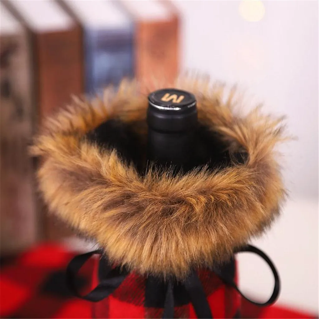 Рождественский клетчатый имитирующий винный набор с бантиком для волос, набор бутылок красного вина