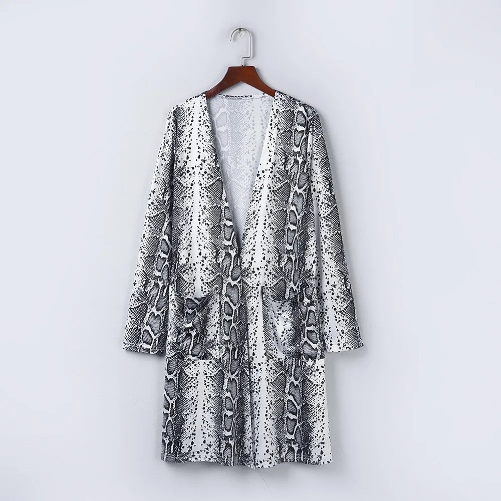 Женский кардиган с длинным рукавом, Повседневная Свободная верхняя одежда со змеиным принтом и карманами, пальто