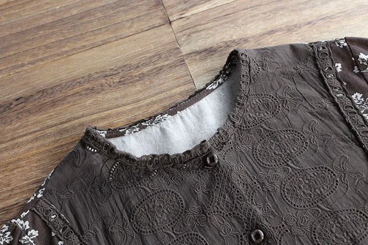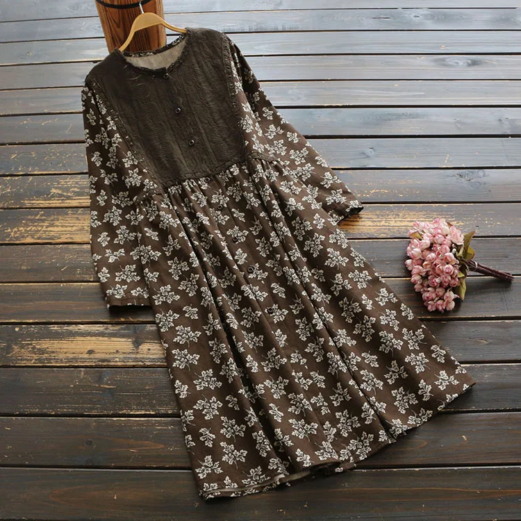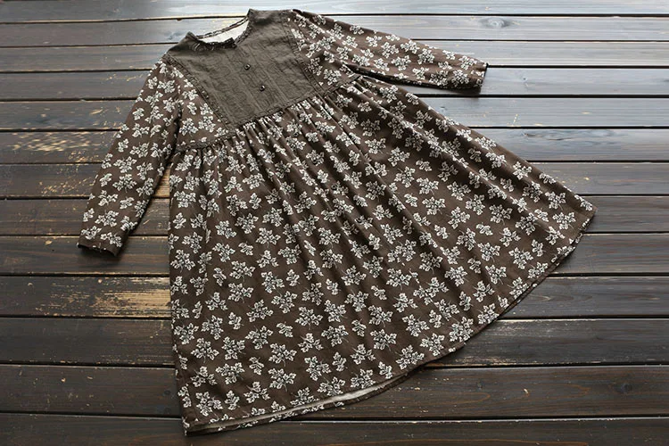 Женское хлопковое льняное платье 2019, с длинным рукавом, на осень и весну, с цветочным принтом, винтажное, с круглым вырезом, Mori Girl, свободное женское платье