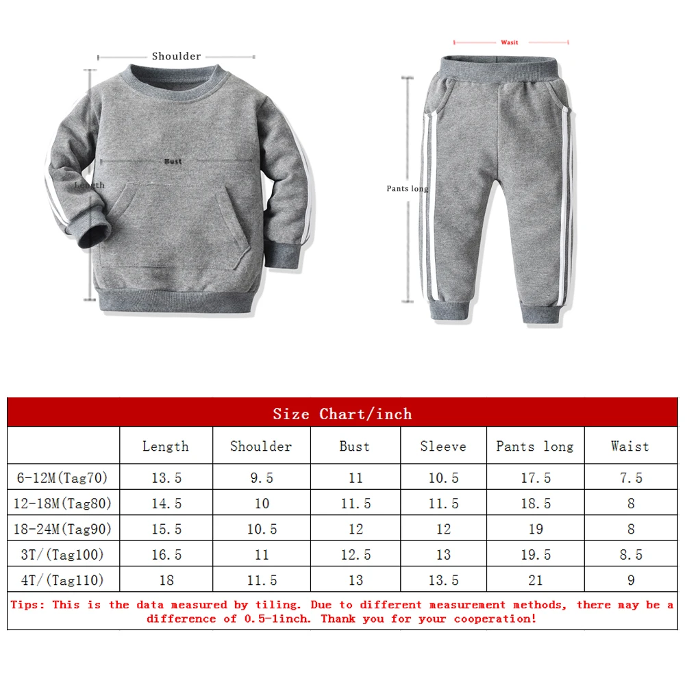 Тренировочный костюм для мальчиков комплекты повседневной зимней одежды для детей Одежда для мальчиков Одежда для маленьких девочек, комплекты из 2 предметов, Топы + штаны, спортивный костюм из хлопка