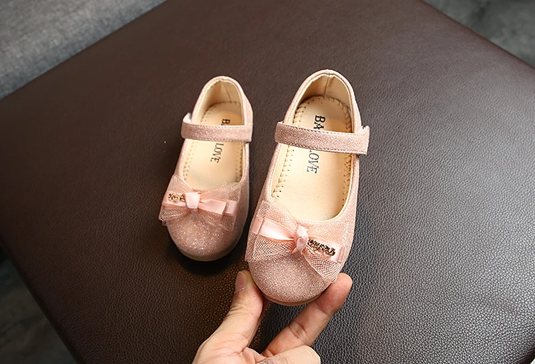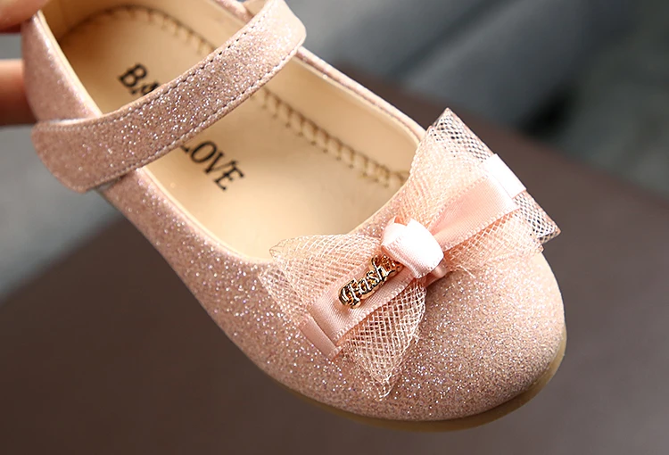 Обувь для вечеринок для девочек; Золотисто-Розовая обувь принцессы; Яркая кожаная обувь для маленьких девочек; Модная детская обувь с бантом