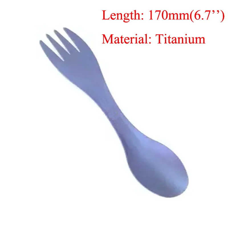 A: титановый материал, синий цвет, 2 в 1 (вилка и ложка)
