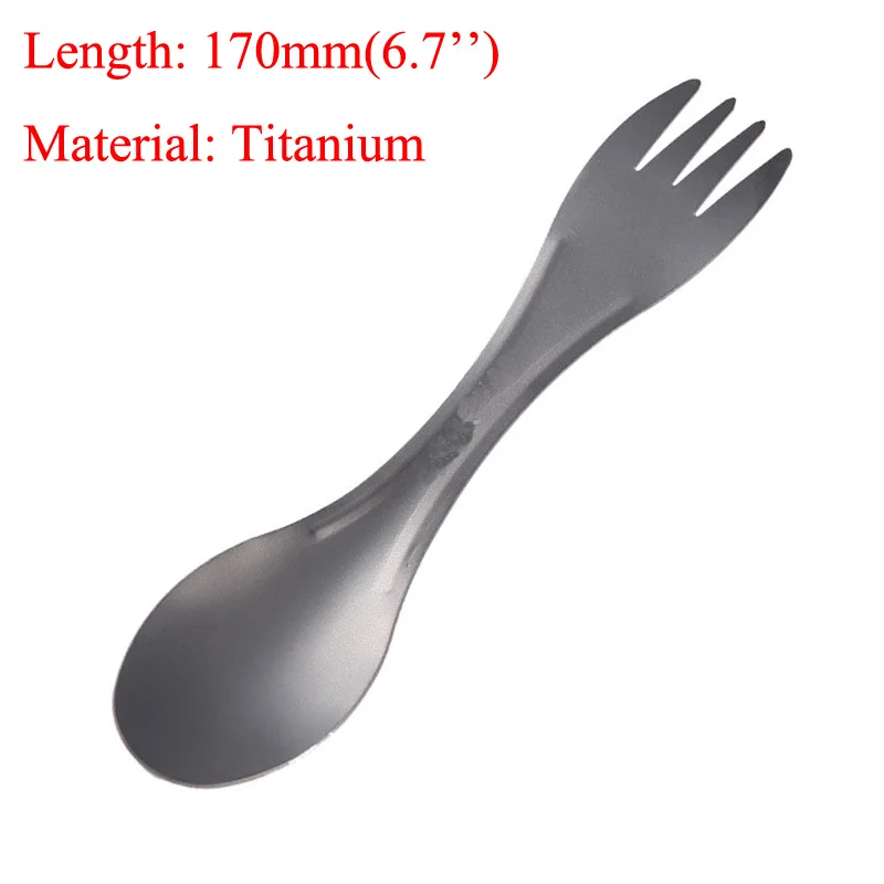 B: титановый материал, титановый цвет, 2 в 1 (вилка и ложка)