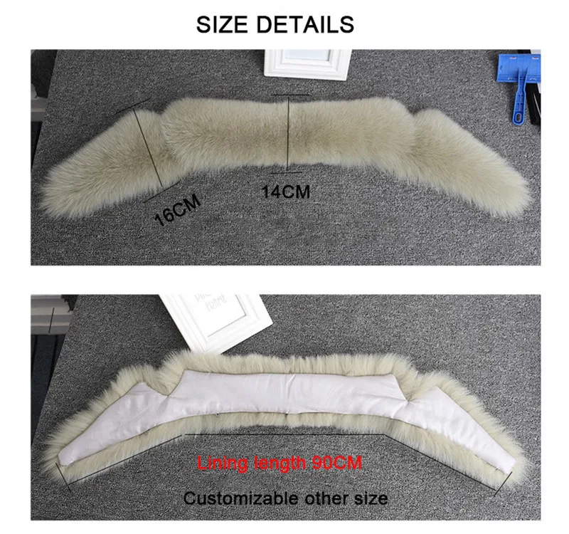Материал: Лисий мех Размер: Длина подкладки 80-100 см (другие цвета и размеры могут быть изменены) Ширина: средняя ширина 14 см, обе стороны 16 см
