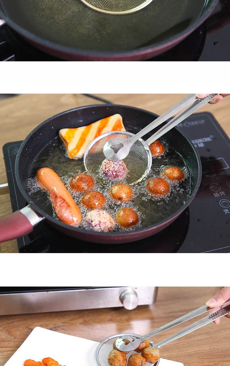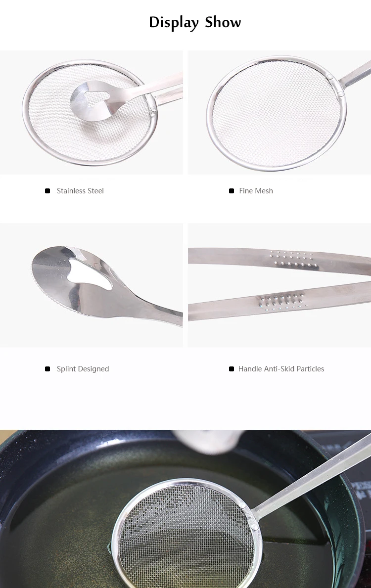 Функция: Модный дуршлаг из нержавеющей стали, кухонные принадлежности, зажим для жарки масла, зажим для барбекю, жарочная ложка, горячий горшок, инструмент для приготовления пищи
