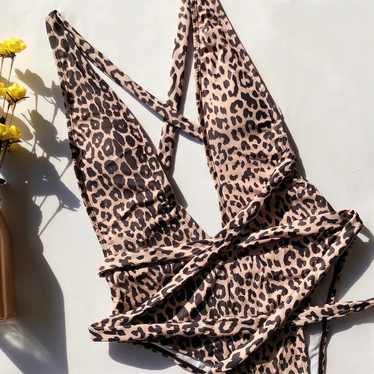 Новинка лета 2020, пикантный розовый Леопардовый Цельный купальник, женский боди, купальный костюм, купальники с пуш-апом, Женская бразильская пляжная одежда для плавания для девушек