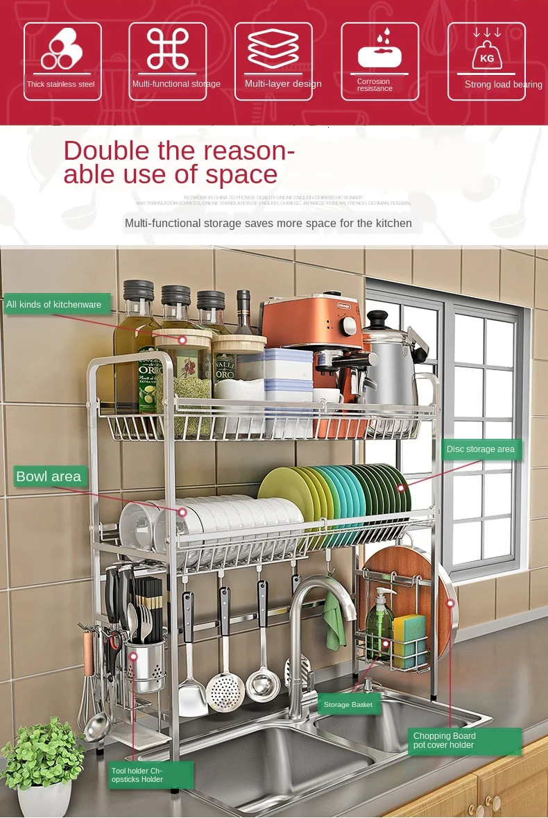 Раковина сливной стеллаж раковина кухонная полка нержавеющая сталь над чашка для дома стойка для посуды.US $87,09 /