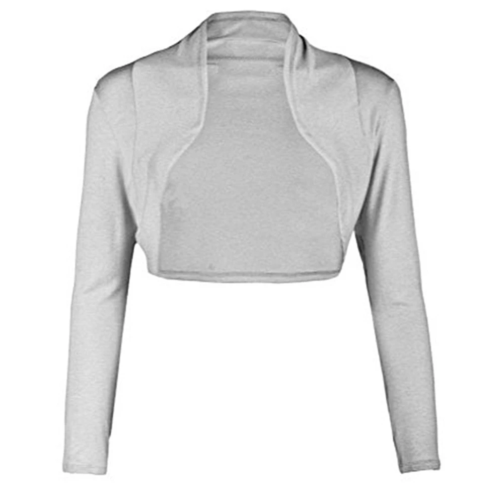 Женское короткое пальто с открытой передней частью, однотонное Болеро-болеро с длинными рукавами, пальто-кардиган для женщин, 2019