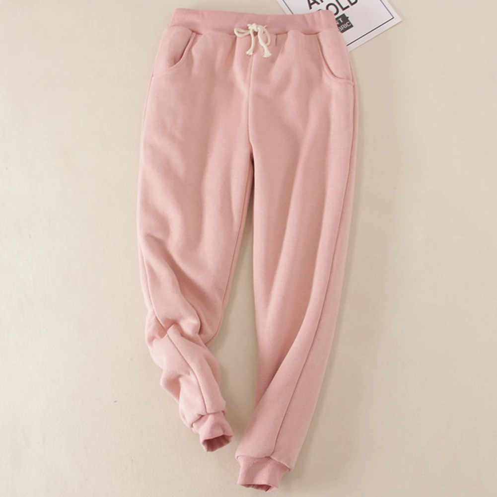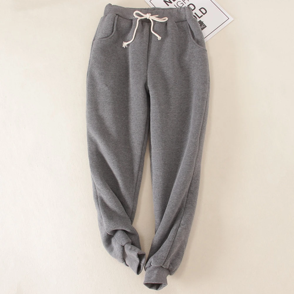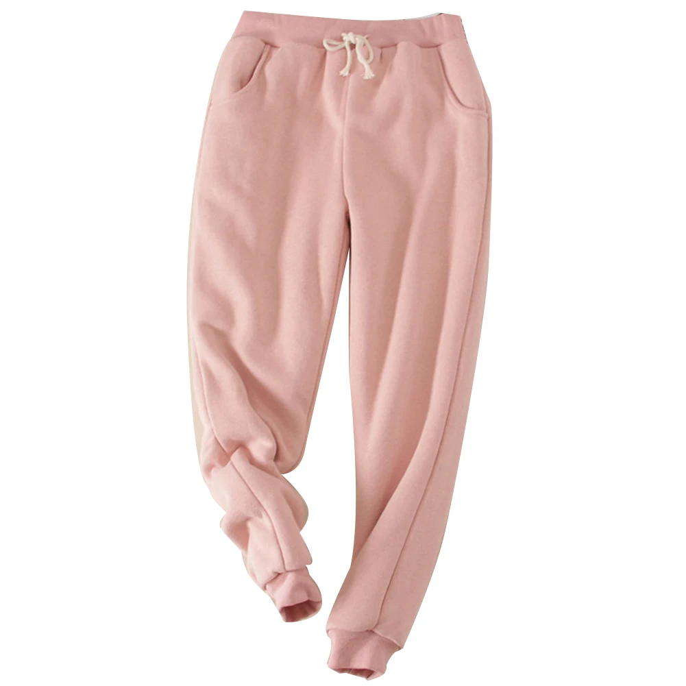 Шикарные Женские однотонные повседневные свободные спортивные брюки со шнурком и карманами, из плюша