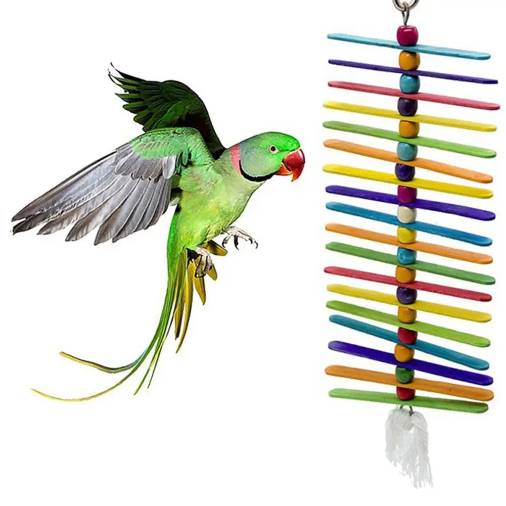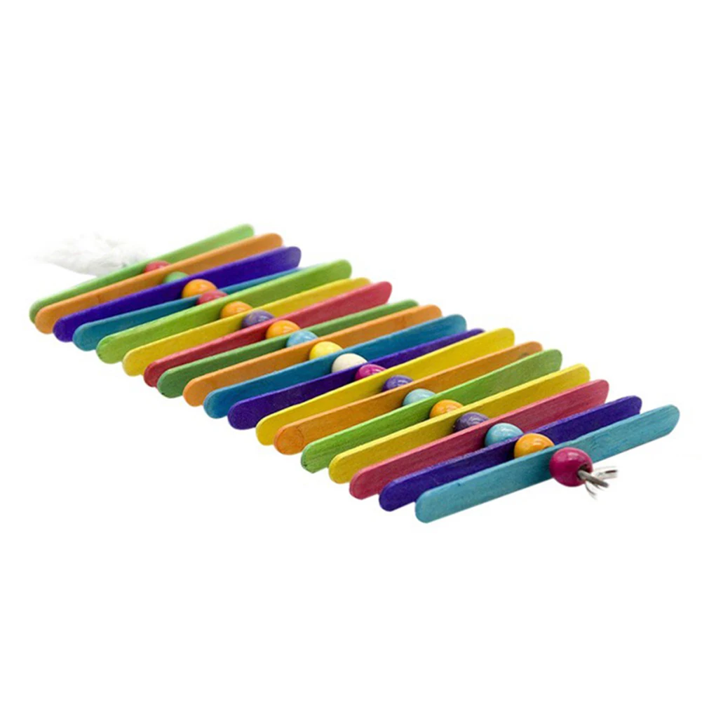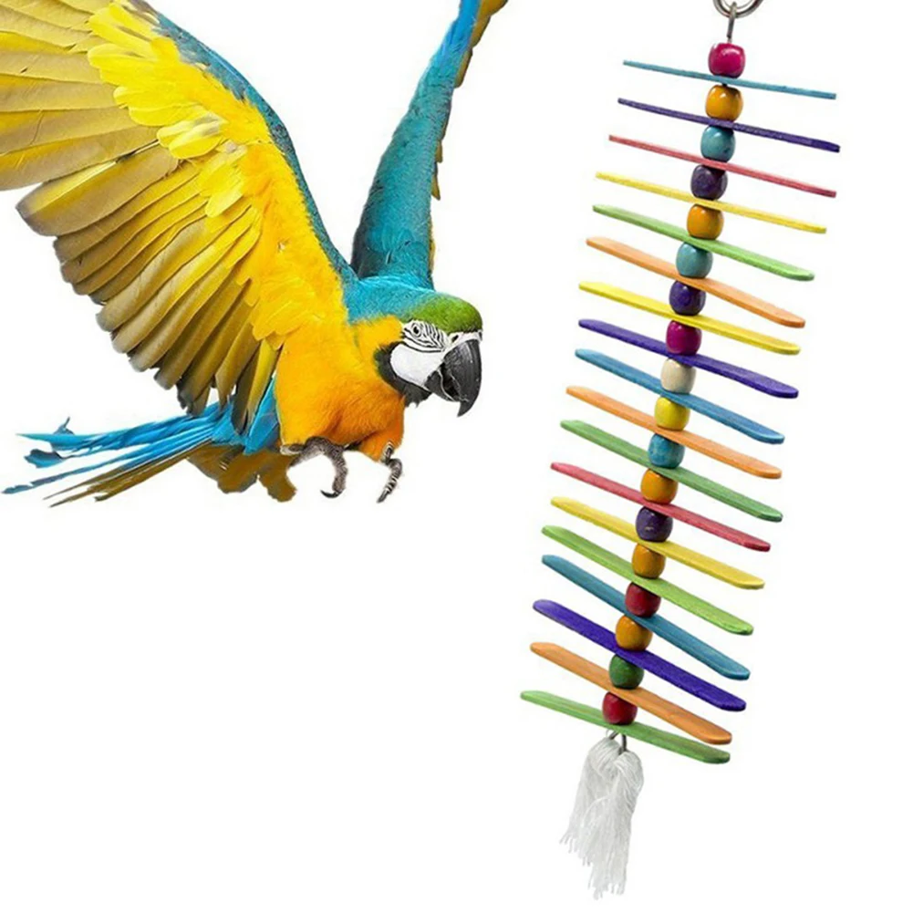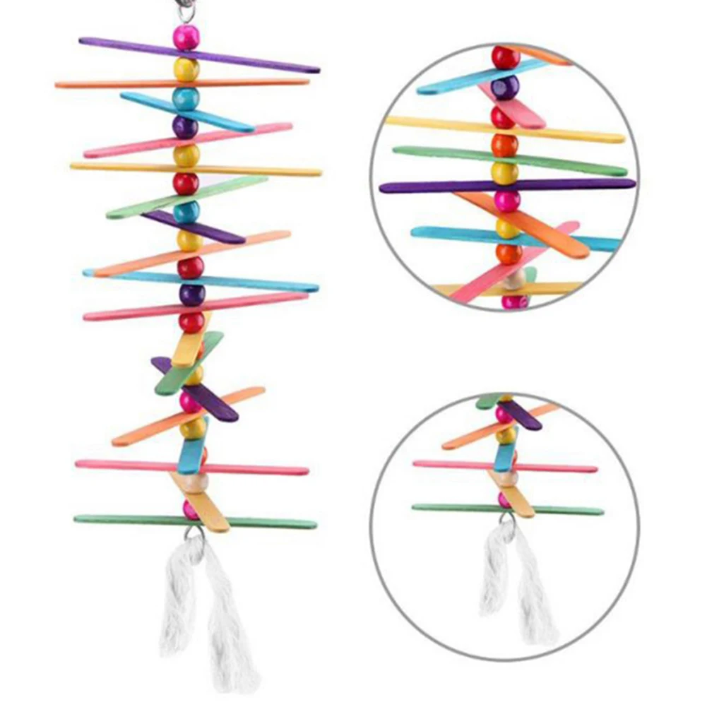 Животные птицы Попугай деревянная палка бусины Веревка качели висит Жевательная игрушечная клетка Декор
