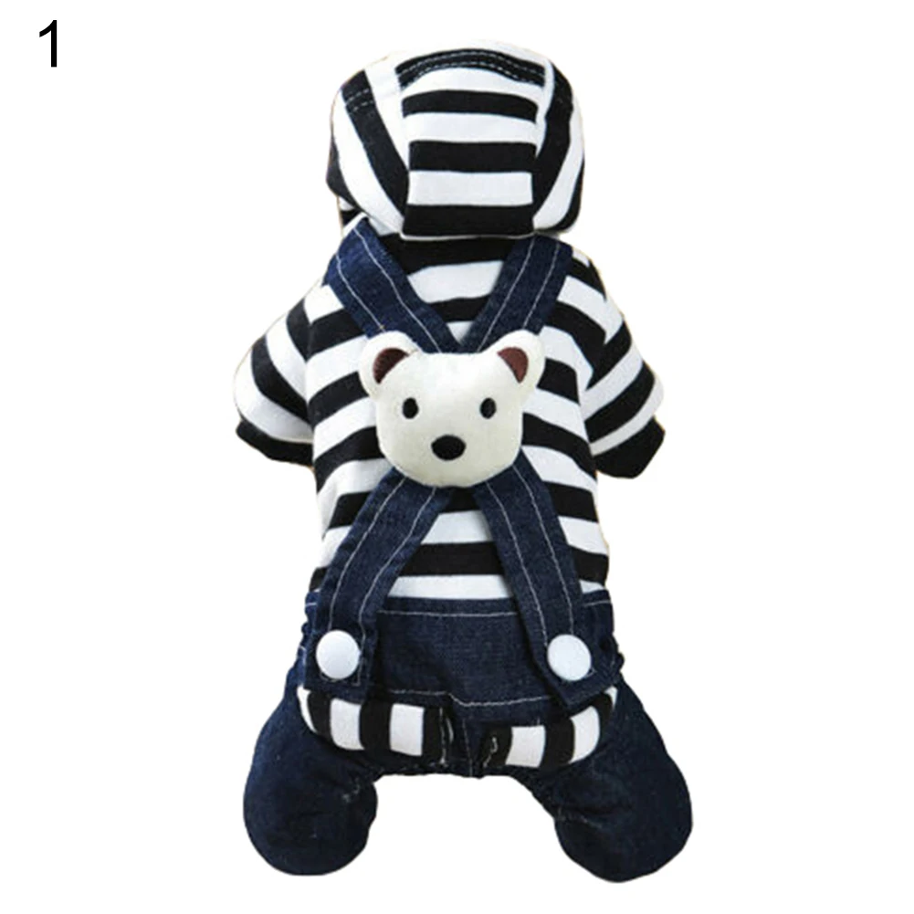Полосатые джинсовые комбинезоны для собак, пальто с капюшоном, куртка, комбинезоны, одежда