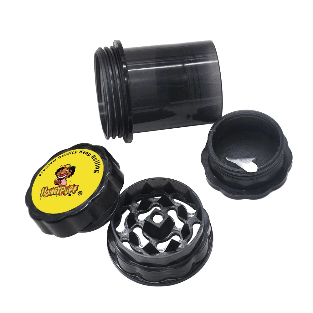 Материал: высококачественный пластик Диаметр: 40 мм/1,57 дюйма Высота: 63 мм/2,48 дюйма Вес нетто: 62 г/шт. Цвет: черный/красный/прозрачный/синий/зеленый (5 видов цветов полностью) Использование: для резки табака Бренд: HoneyPuff Слоев: 4 слоя Зубы: острые зубы акулы Дизайн: один из способов использования
