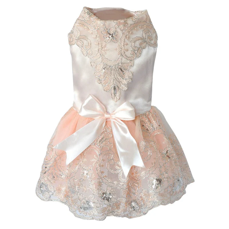 3. Дизайн стерео вышивки придает стильный и классический шарм и украшает собак, что делает их более привлекательными. Также подходит для использования в качестве свадебного платья.