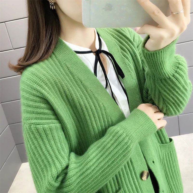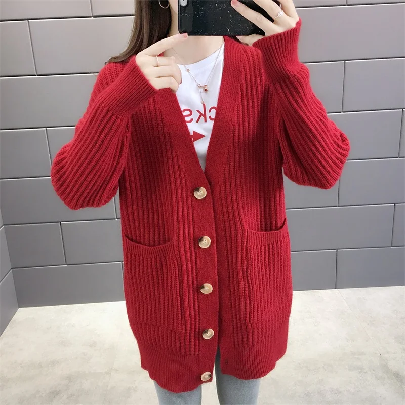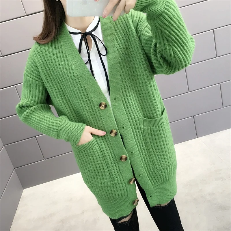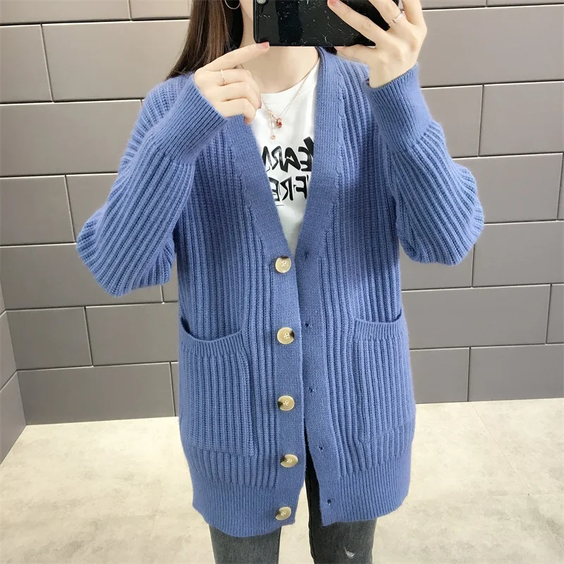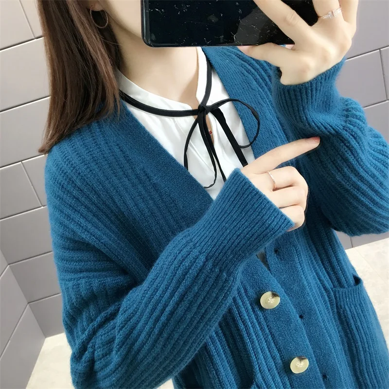 Новинка 2021, женский кардиган, свитера с v-образным вырезом, однотонный, большой, однобортный, Повседневный, трикотажный, зимняя верхняя одежда, куртка, пальто, Ropa Mujer