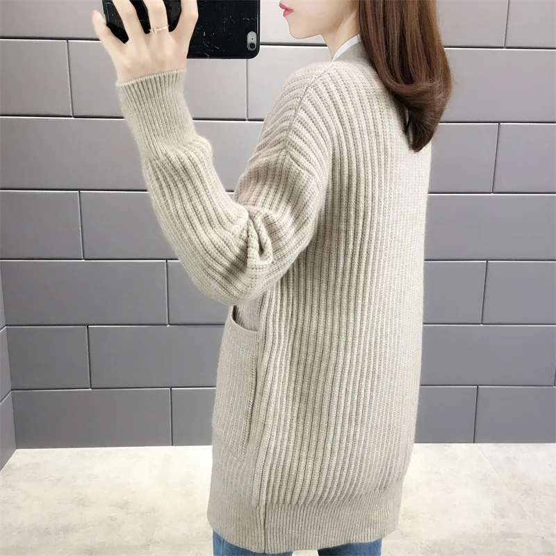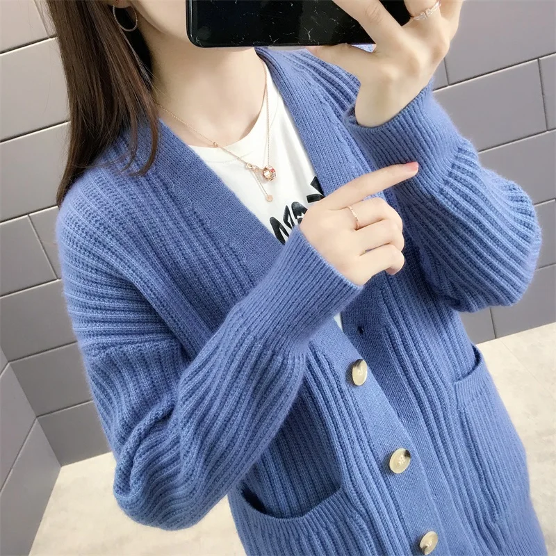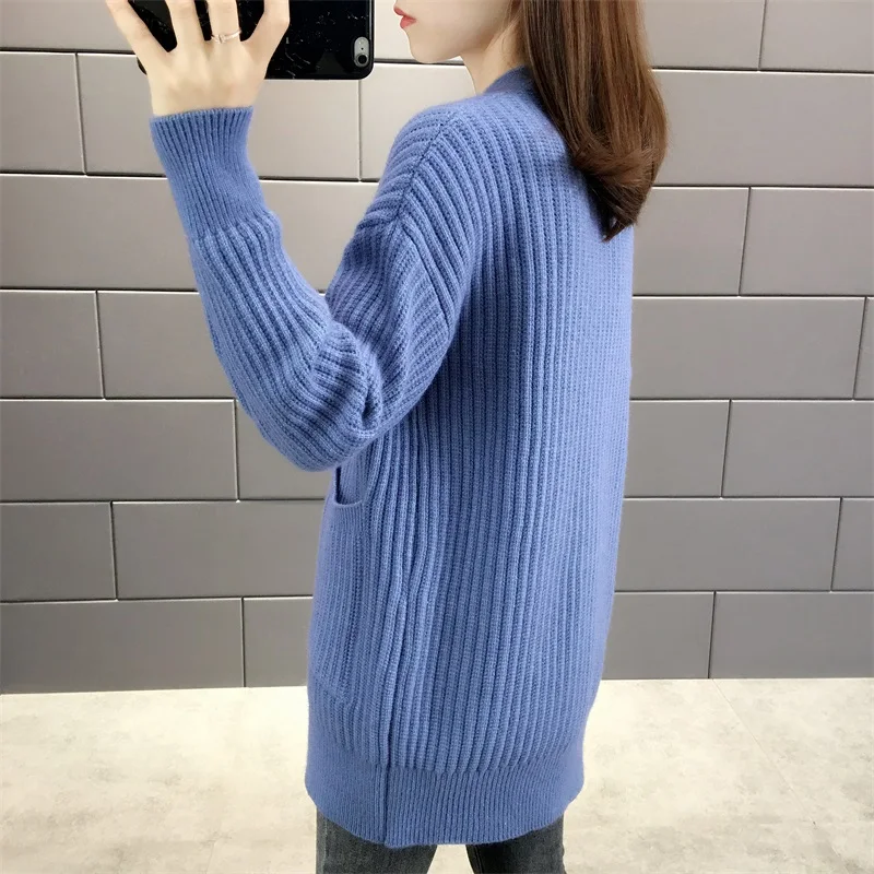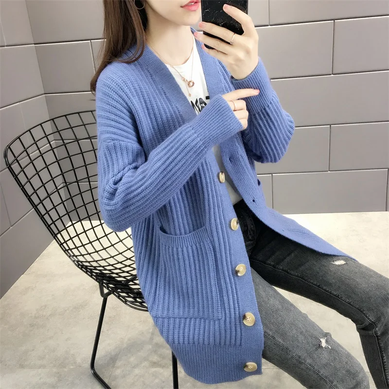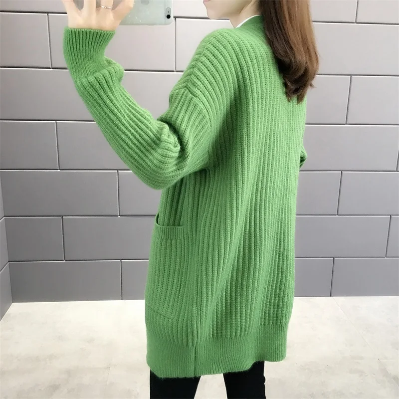 Новинка 2021, женский кардиган, свитера с v-образным вырезом, однотонный, большой, однобортный, Повседневный, трикотажный, зимняя верхняя одежда, куртка, пальто, Ropa Mujer