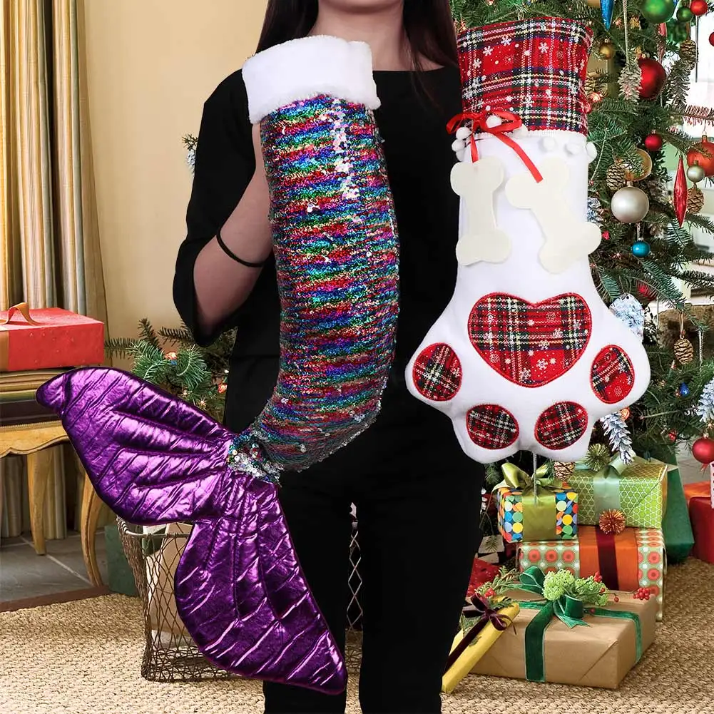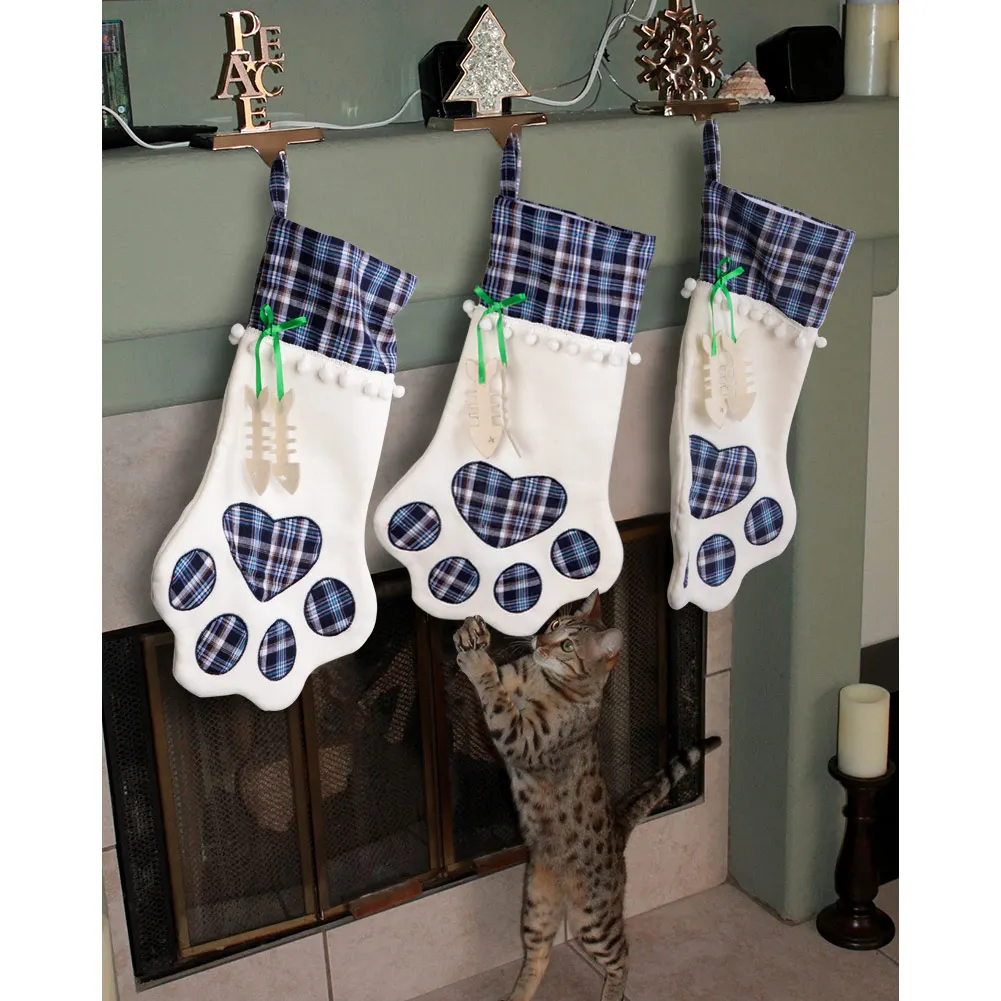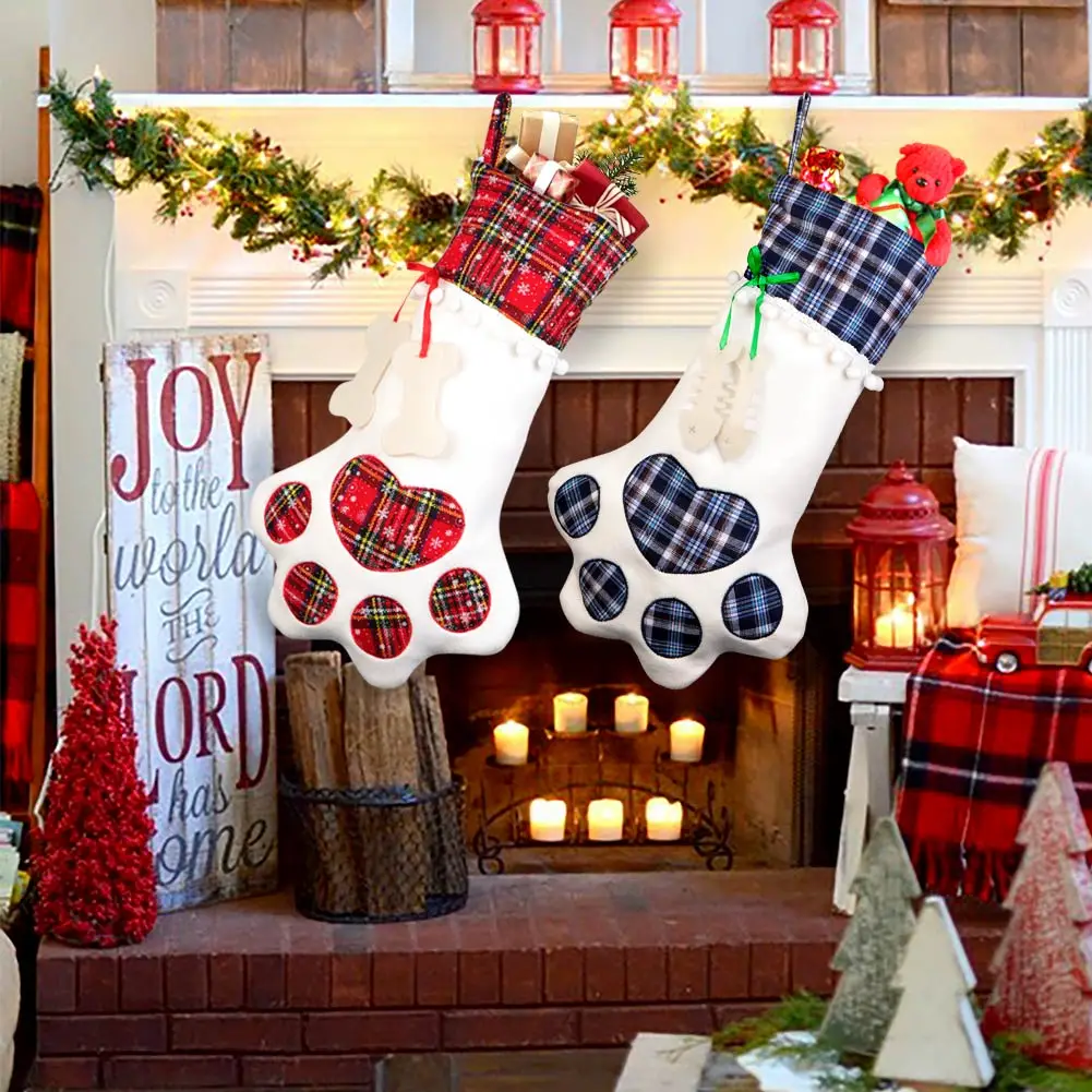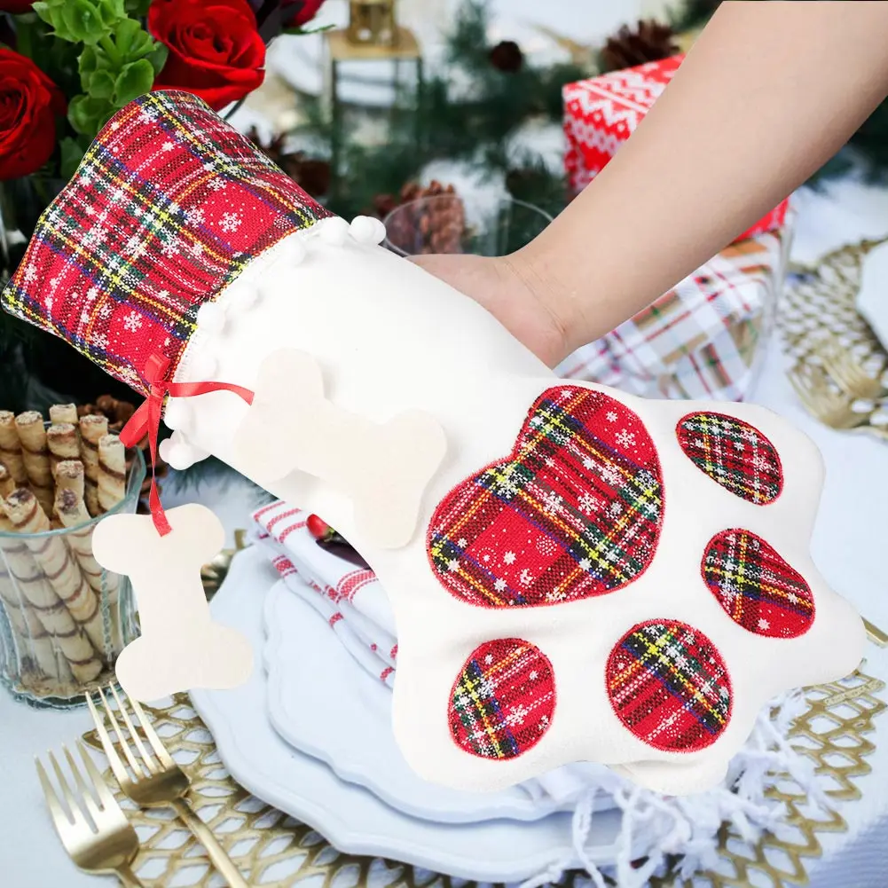 Изысканные рождественские чулки для домашних животных идеально подходят для рождественского камина, стены, лестницы, украшения рождественской елки, создают незабываемое теплое и уютное торжество для вашего драгоценного члена семьи.