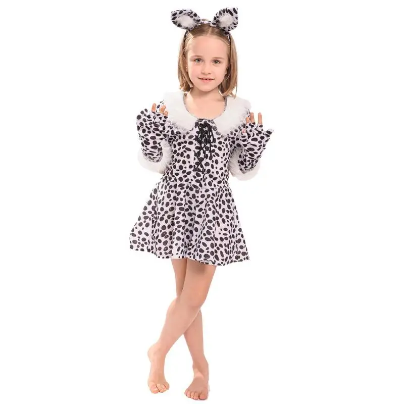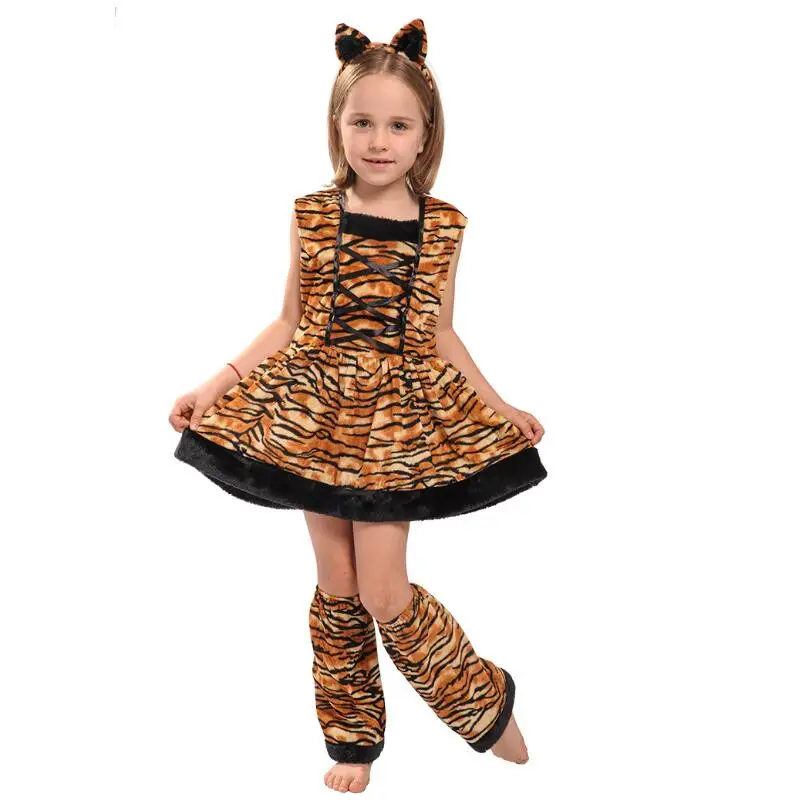 Girl's Kids Cartoon Animal Tiger Halloween Party Tiger Costumes Outfit Fancy Animal Cosplay Dress with Headband Gloves