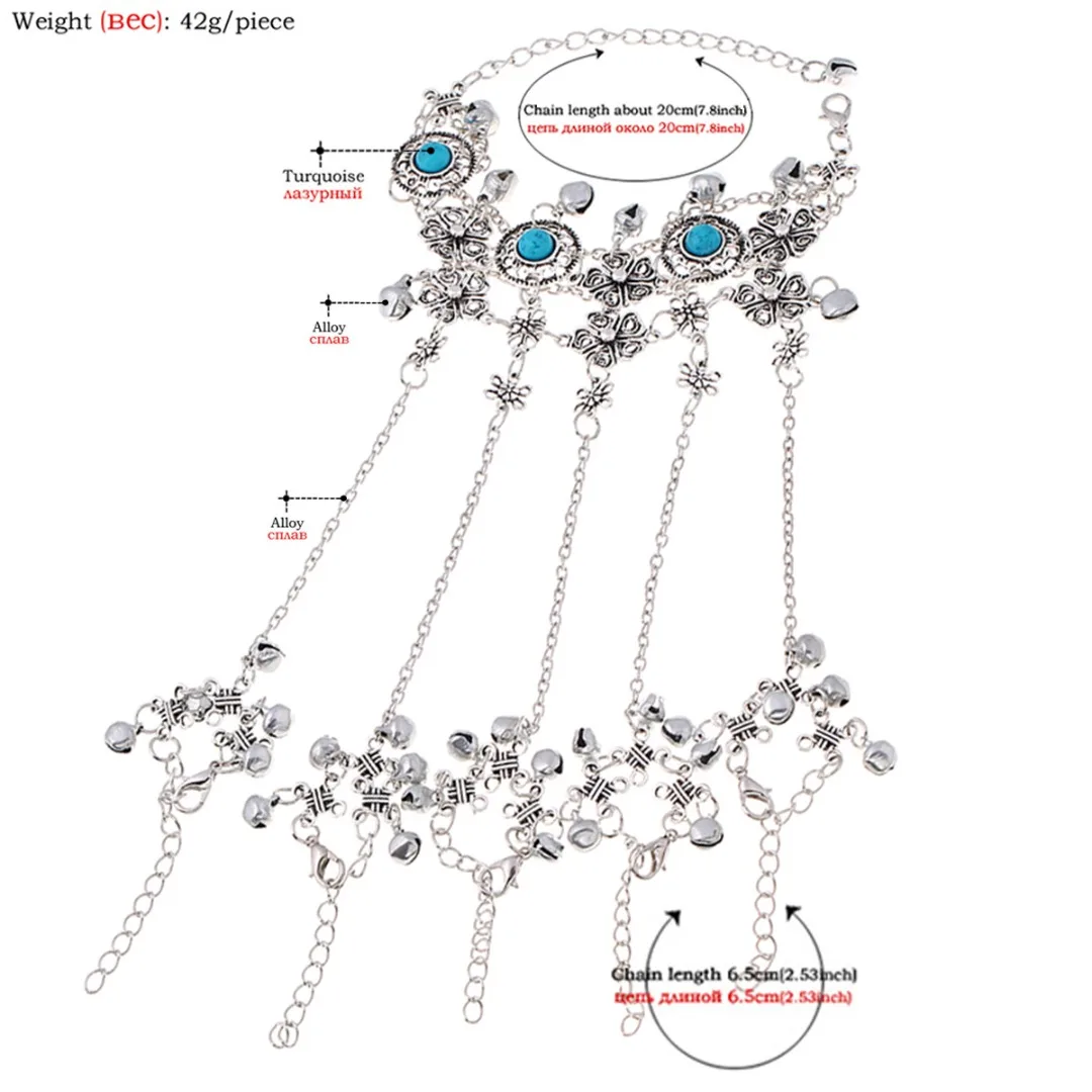 Маленький дизайн колокольчиков, инкрустированный искусственным Бирюзой, винтажный стиль, модная одежда.