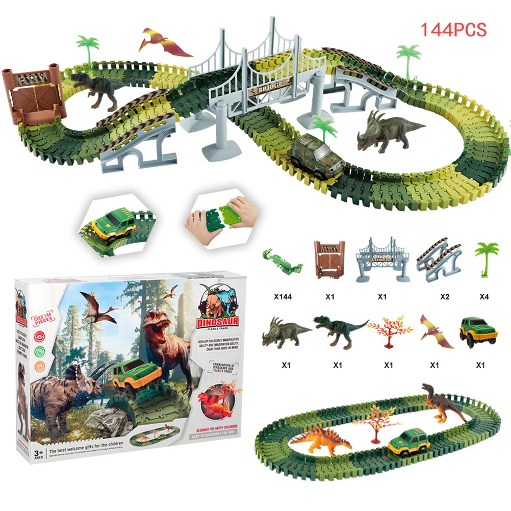 144 шт динозавров Электрический рельсовый автомобиль игрушка