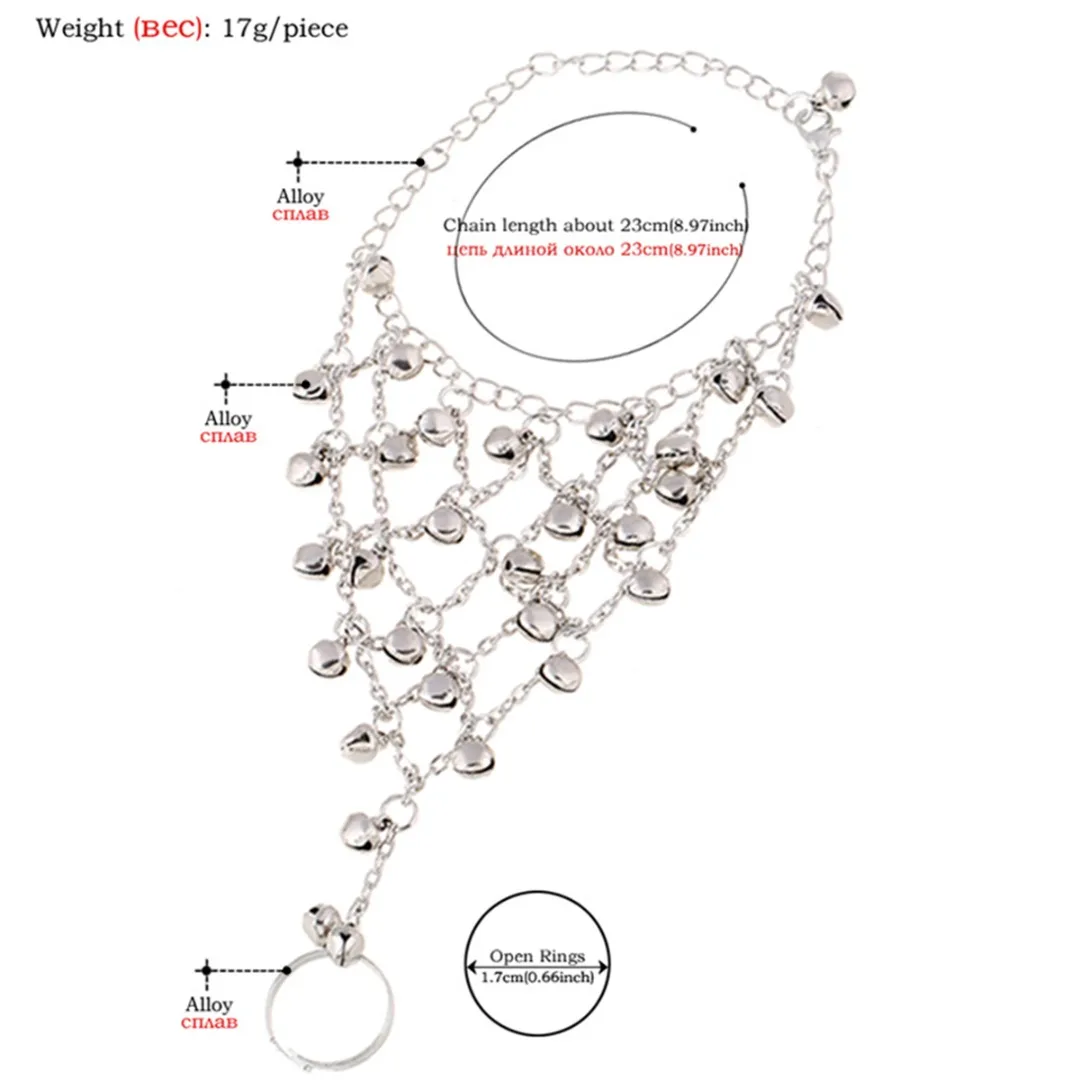 Посеребренный дизайн с маленькими колокольчиками, украшение на кольцо среднего пальца, винтажный стиль, модная одежда.