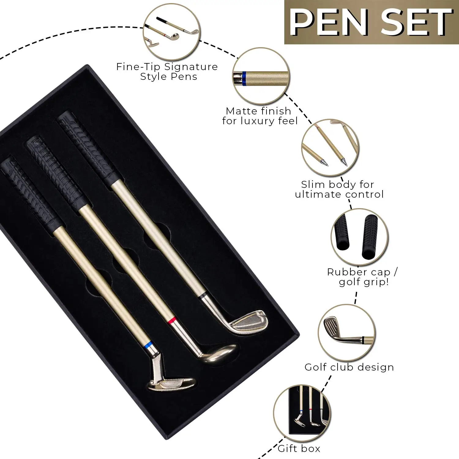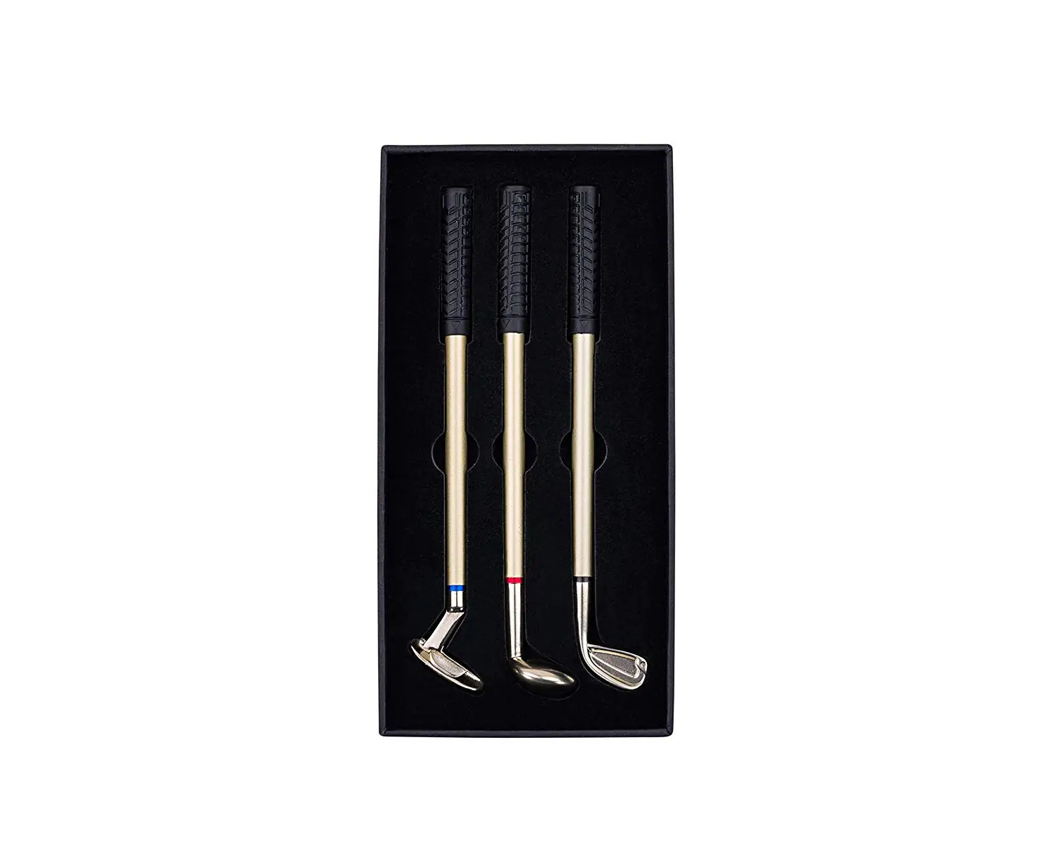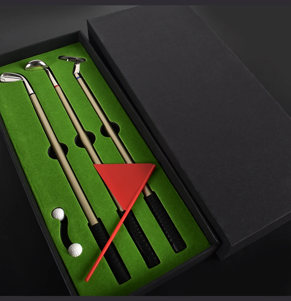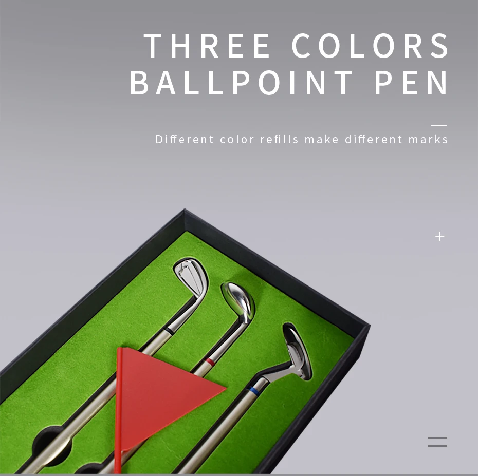 3 разных клубных ручки: Паттер с синими чернилами, драйвер с красными чернилами и танкетка с черными чернилами