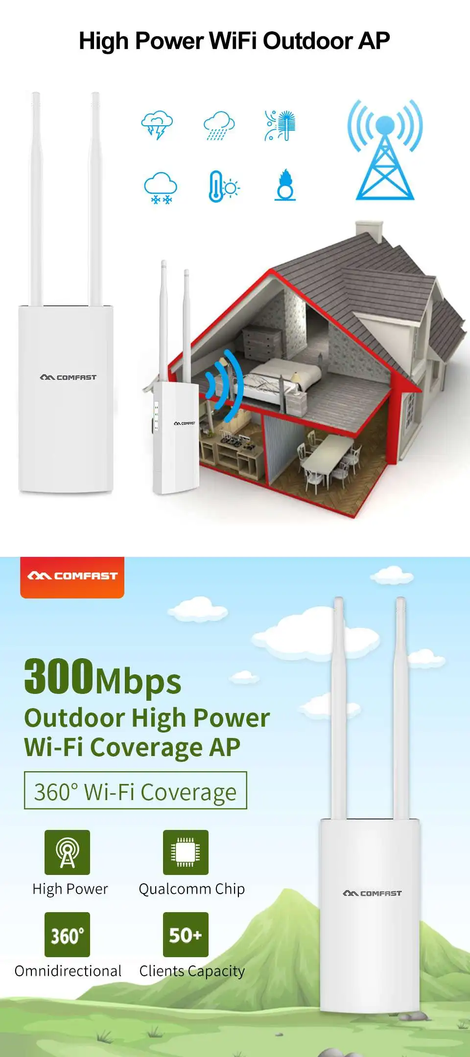 1. CF-EW71-это высокопроизводительный, экономичный наружный продукт. Разработан с чипсетом Qualcomm QCA9531, 16M флэш-память/64M память, 100 Мбит/с сетевой интерфейс, выходная мощность до 500 МВт, Беспроводная скорость до 300 Мбит/с, может удовлетворить потребности 50 конечных пользователей одновременно.