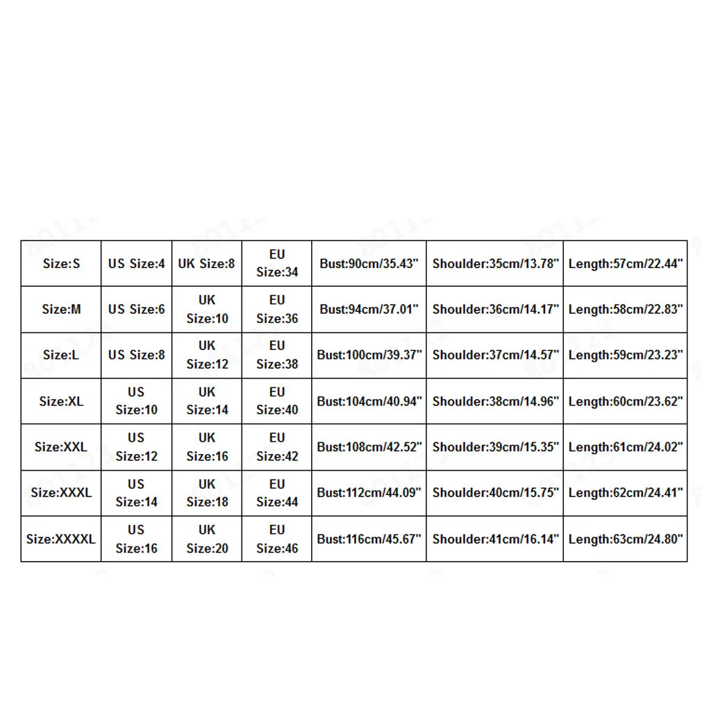 Размер: SРазмер США: 4Размер Великобритании: 8Европейский размер: 34Обхват груди: 90 см/35,43 дюймаШирина плеч: 35 см/13,78 дюймаДлина: 57 см/22,44''Размер: MРазмер США: 6Размер Великобритании: 10Европейский размер: 36Обхват груди: 94 см/37,01 дюймаШирина плеч: 36 см/14,17 дюймаДлина: 58 см/22,83''Размер: LРазмер США: 8Размер Великобритании: 12Европейский размер: 38Обхват груди: 100 см/39,37 дюймаШирина плеч: 37 см/14,57 дюймаДлина: 59 см/23,23''Размер: XLРазмер США: 10Размер Великобритании: 14Европейский размер: 40Обхват груди: 104 см/40,94 дюймаШирина плеч: 38 см/14,96 дюймаДлина: 60 см/23,62"Размер: XXLРазмер США: 12Размер Великобритании: 16Европейский размер: 42Обхват груди: 108 см/42,52 дюймаПлечо: 39 см/15,35 дюймаДлина: 61 см/24,02"Размер: XXXLРазмер США: 14Размер Великобритании: 18Европейский размер: 44Обхват груди: 112 см/44,09 дюймаПлечо: 40 см/15,75 дюймаДлина: 62 см/24,41"Размер: XXXXLРазмер США: 16Размер Великобритании: 20Европейский размер: 46Обхват груди: 116 см/45,67 дюймаШирина плеч: 41 см/16,14 дюймаДлина: 63 см/24,80"