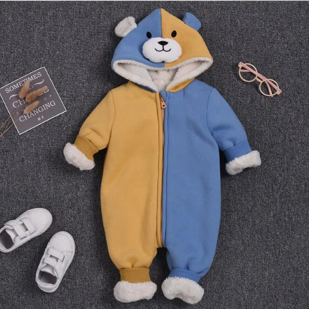 Теплый двухцветный комбинезон для новорожденных мальчиков и девочек, комбинезон, пальто с капюшоном, верхняя одежда
