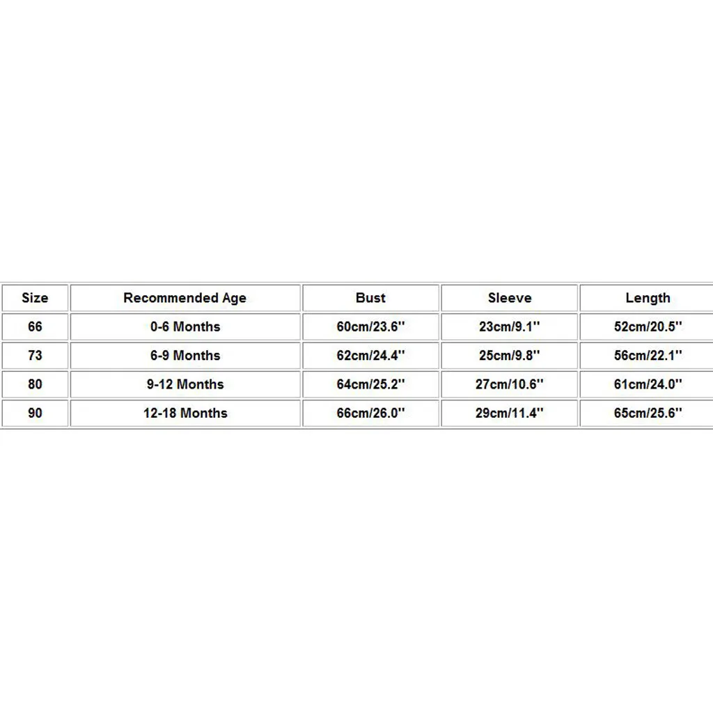 Размер Рекомендуемый возраст Обхват груди Рукава Длина 66 Для детей от 0 до 6 месяцев 60 см/23,6'' 23 см/9,1'' 52 см/20,5'' 73 6-9 месяцев 62 см/24,4'' 25 см/9,8'' 56 см/22,1'' 80 9-12 месяцев Высота голенища 64 см; 25,2'' 27 см/10,6'' 61 см/24,0'' 90 12-18 месяцев 66 см/26,0'' 29 см/11,4'' 65 см/25,6''