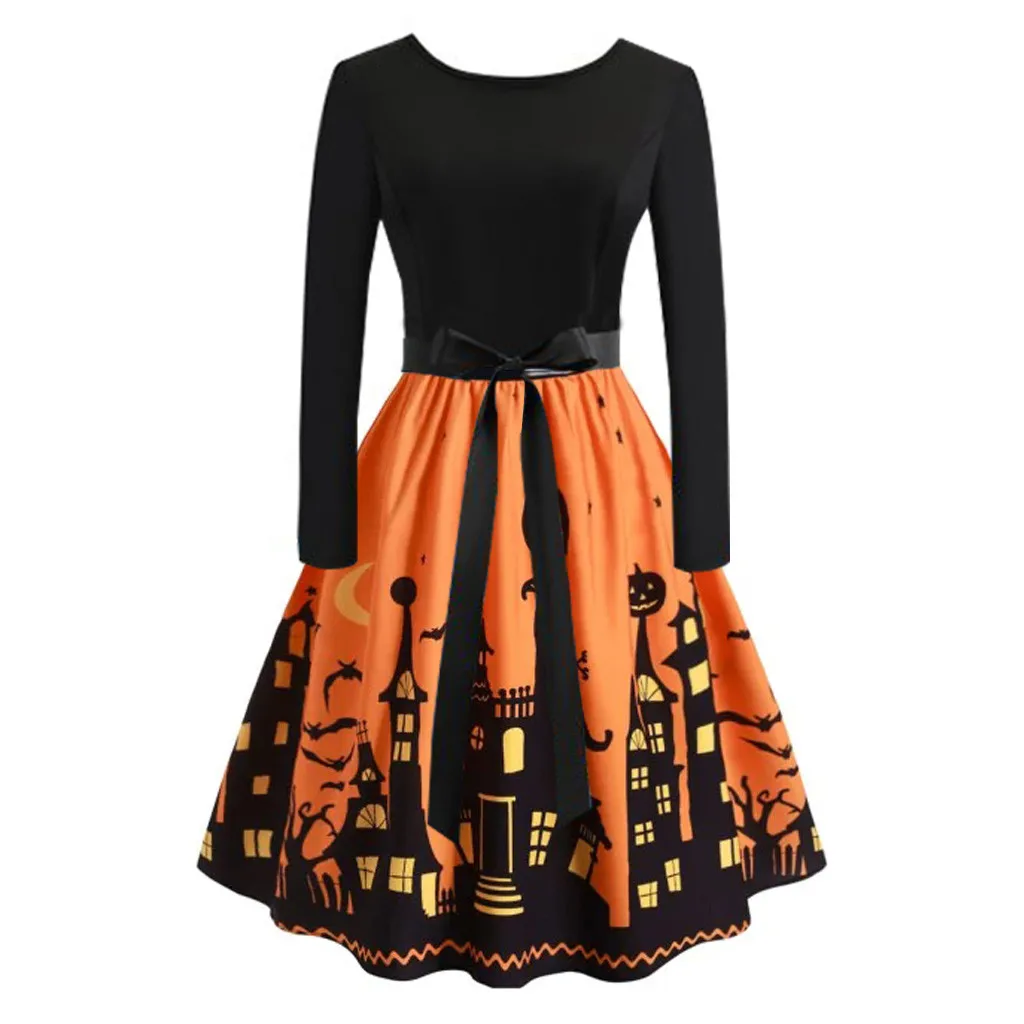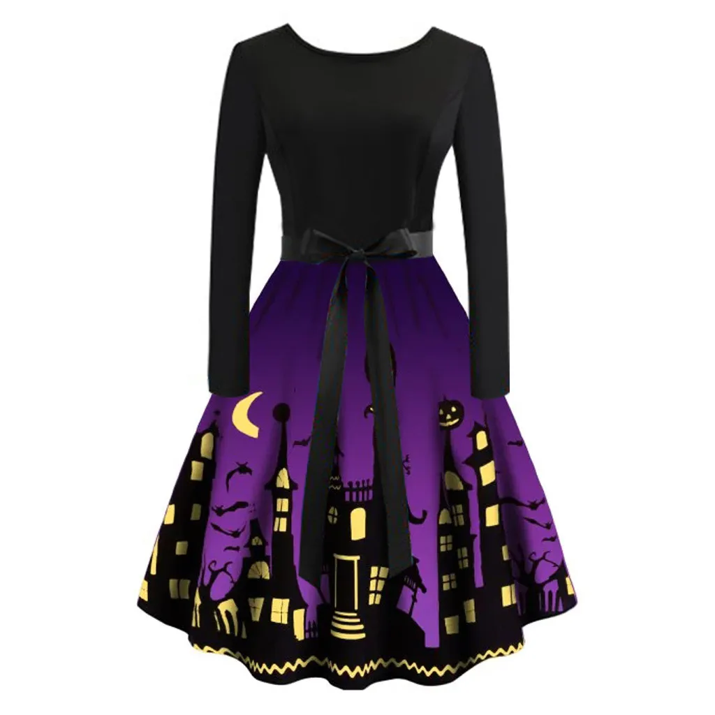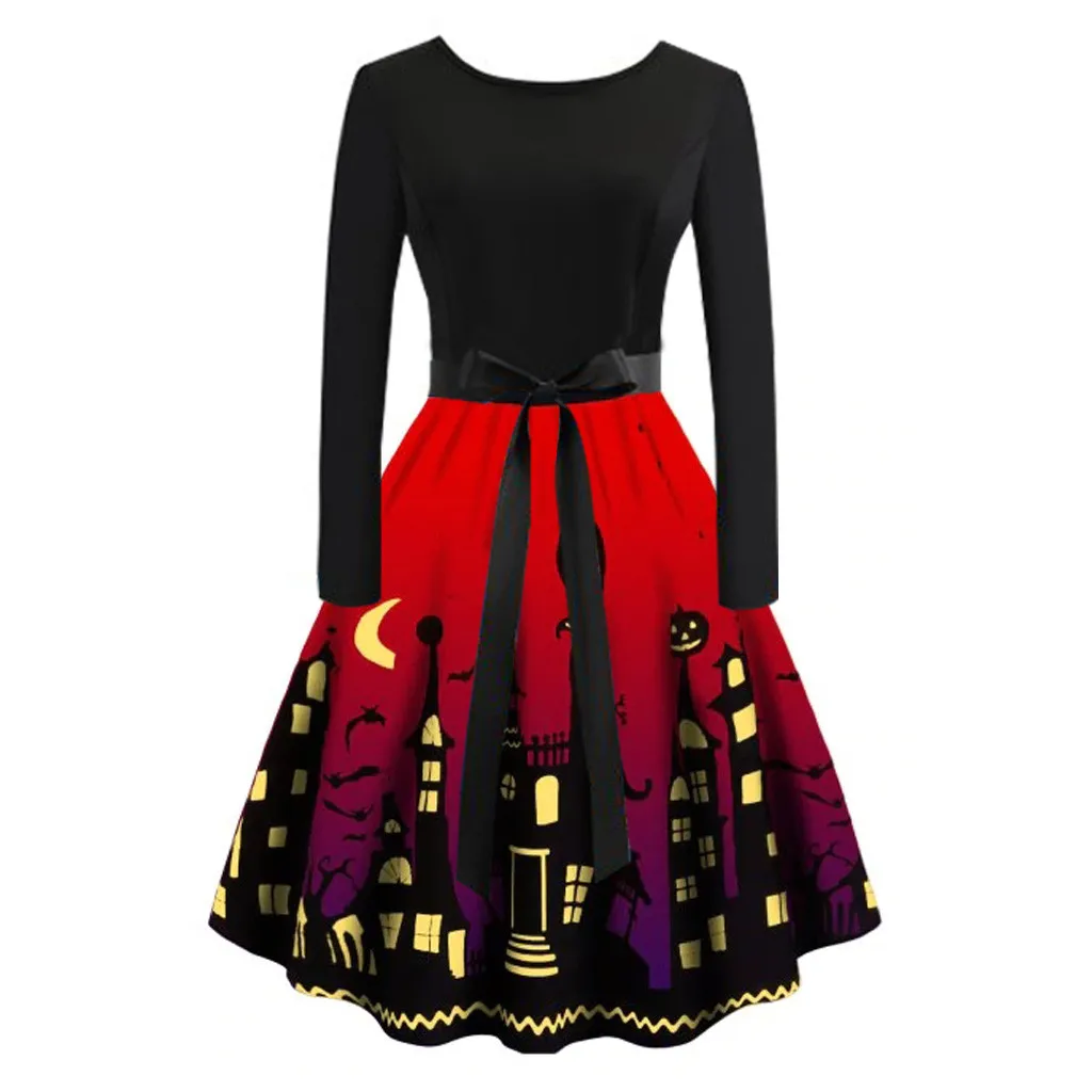 Женское Повседневное платье на Хэллоуин с длинным рукавом с принтом размера плюс вечерние платья