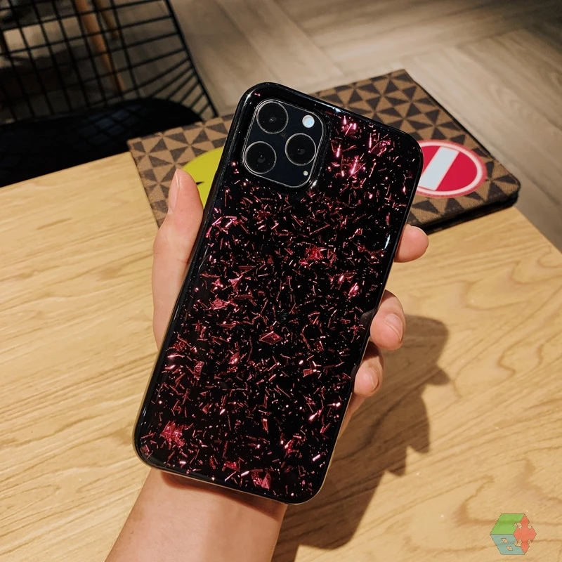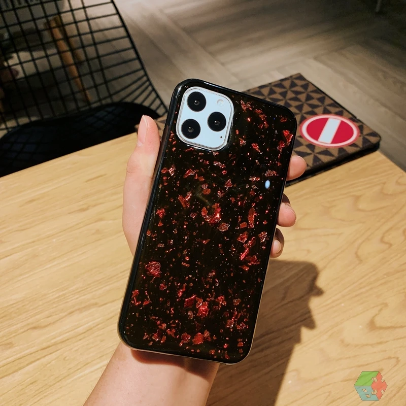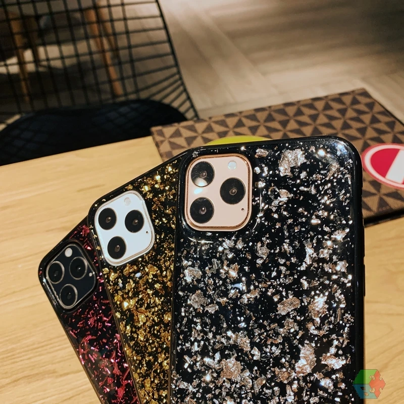 Блестящий блестящий черный мягкий силиконовый чехол из ТПУ с золотой фольгой и блестками для iPhone 6 6s 7 8 Plus 10 X XS XR 11 Pro Max, чехол